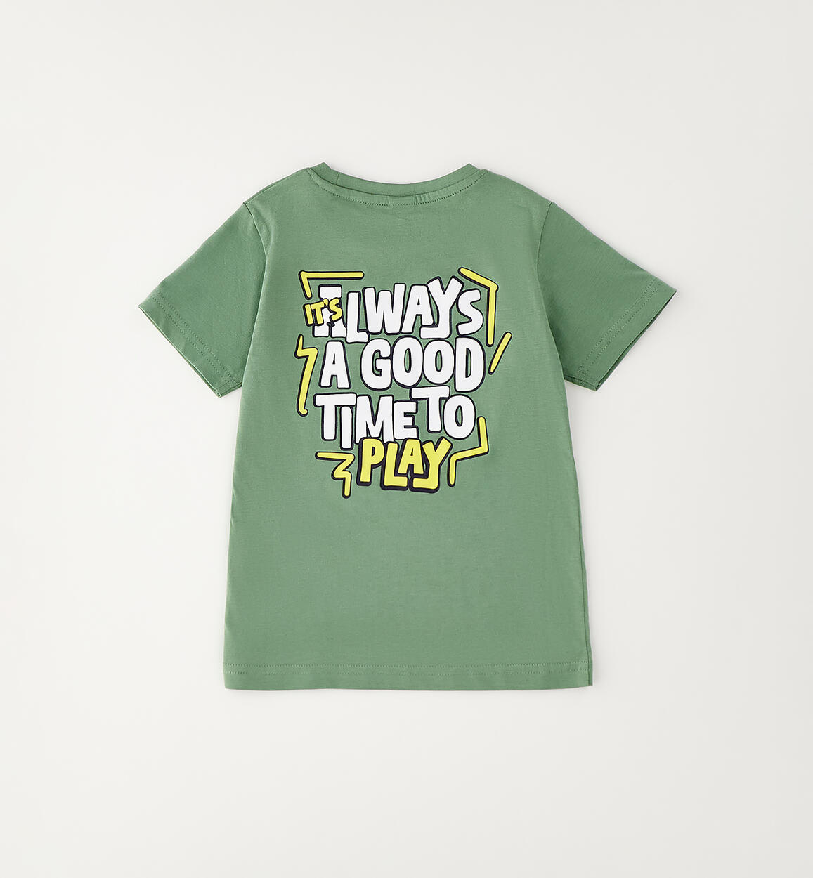T-shirt per bambino iDO realizzata in jersey 100% cotone con stampa davanti e grande stampa dietro. Scegliendo i nostri prodotti in cotone, sostieni l'impegno di iDO nella missione Better Cotton. La fornitura di questo prodotto avviene tramite un sistema di bilancio di massa e potrebbe non contenere Better Cotton. Leggi di più su bettercotton.org/massbalance