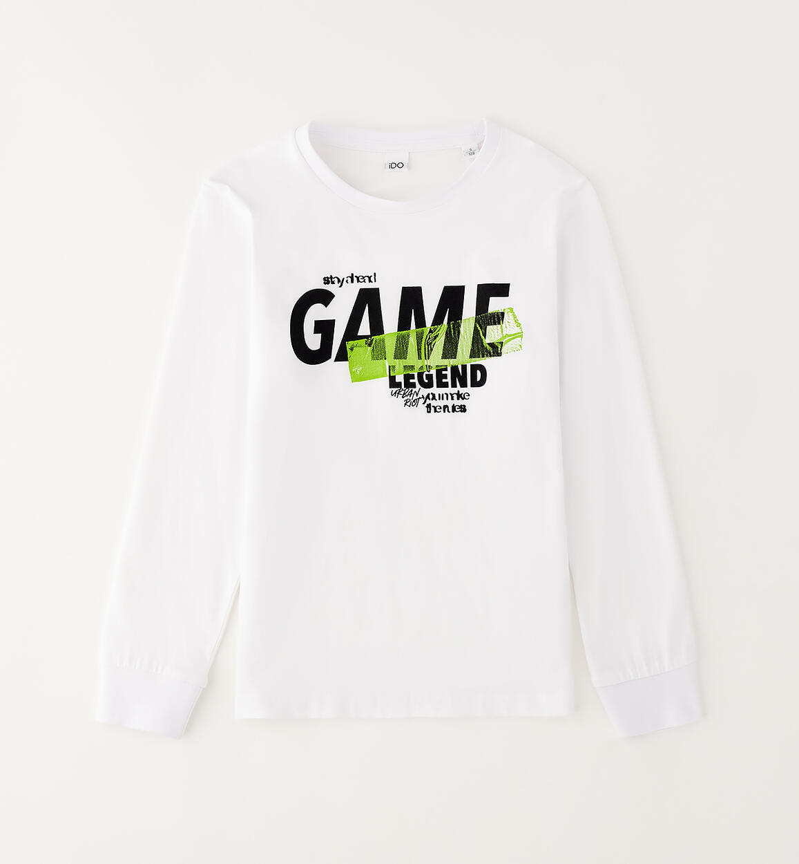 Girocollo a manica lunga per ragazzo iDO realizzata in jersey 100% cotone con stampa e polsino elastico