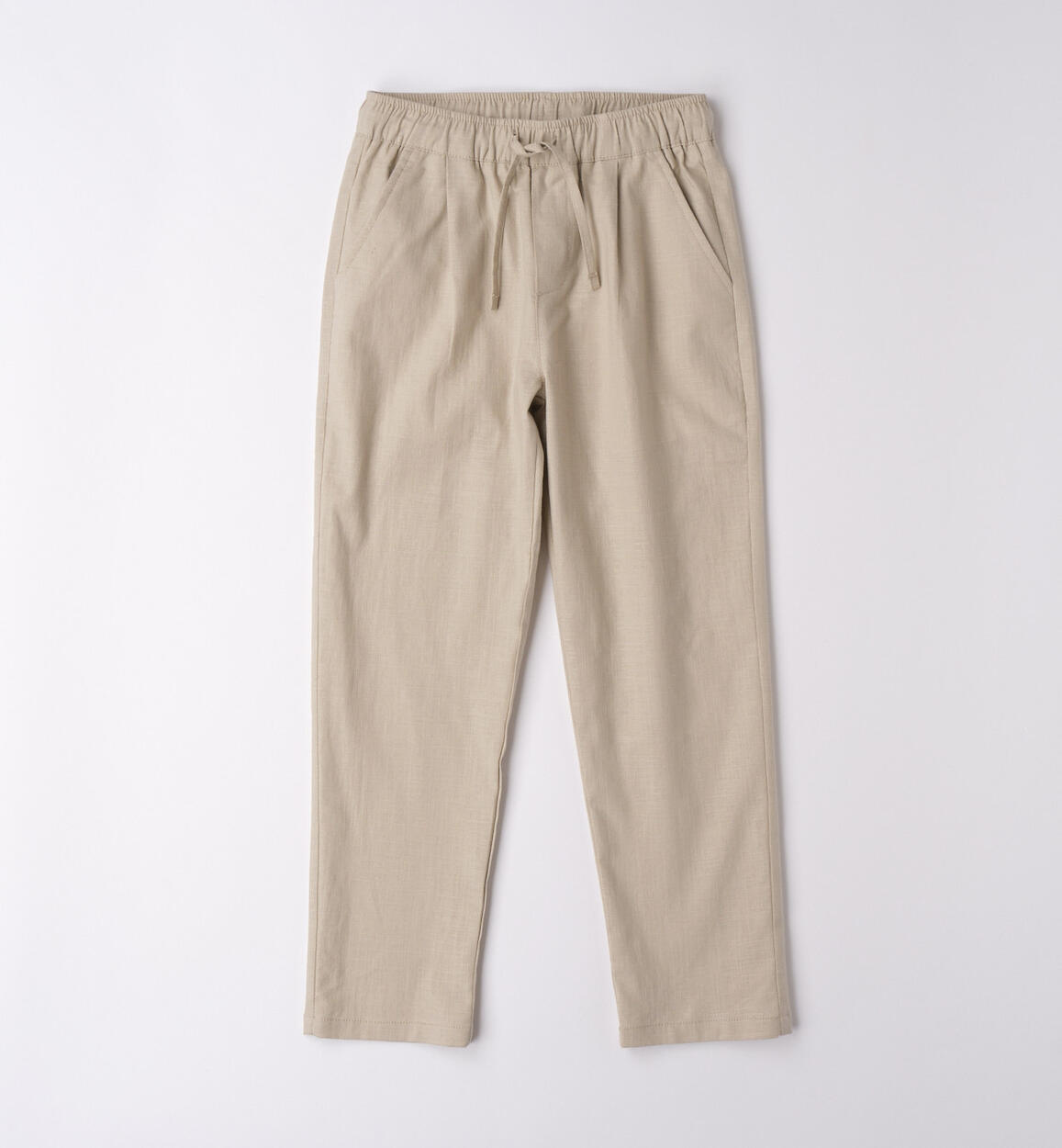 Pantalone lungo per ragazzo iDO realizzato in lino e cotone. Elastico in vita e coulisse. Relaxed fit. Vita regolabile con elastico asolato interno