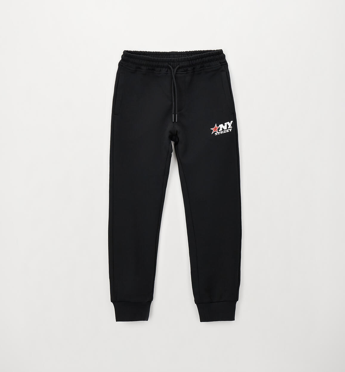 Pantalone lungo in felpa 100% cotone per ragazzo iDO. Elastico in vita e coulisse. Costina sul fondo gamba e stampa davanti