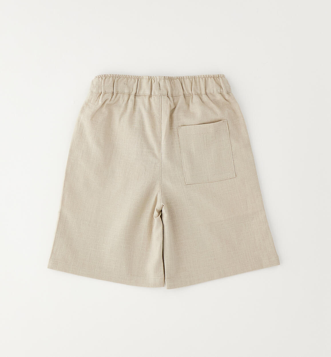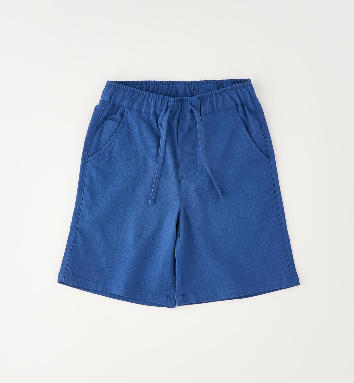 Pantalone corto per bambino iDO realizzato in lino e cotone con elastico in vita e coulisse. Vita regolabile con elastico asolato interno. Lunghezza sotto al ginocchio. Regular fit