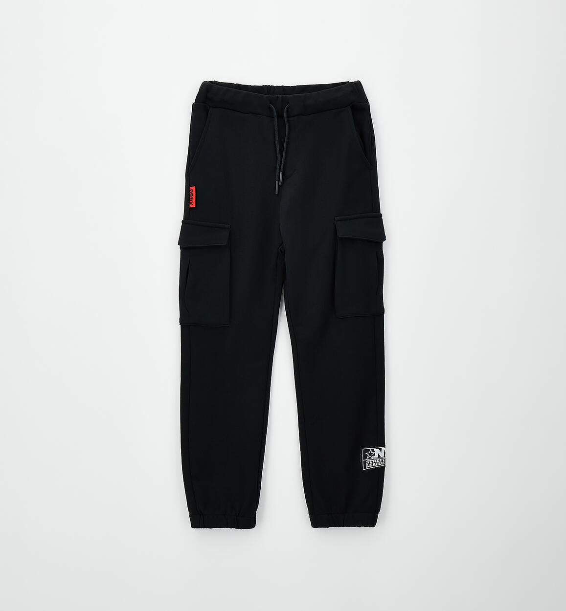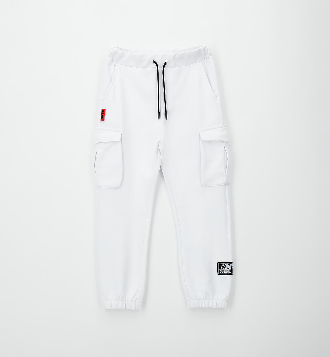 Pantalone lungo in felpa 100% cotone con tasconi laterali. Elastico in vita e coulisse. Vestibilità over