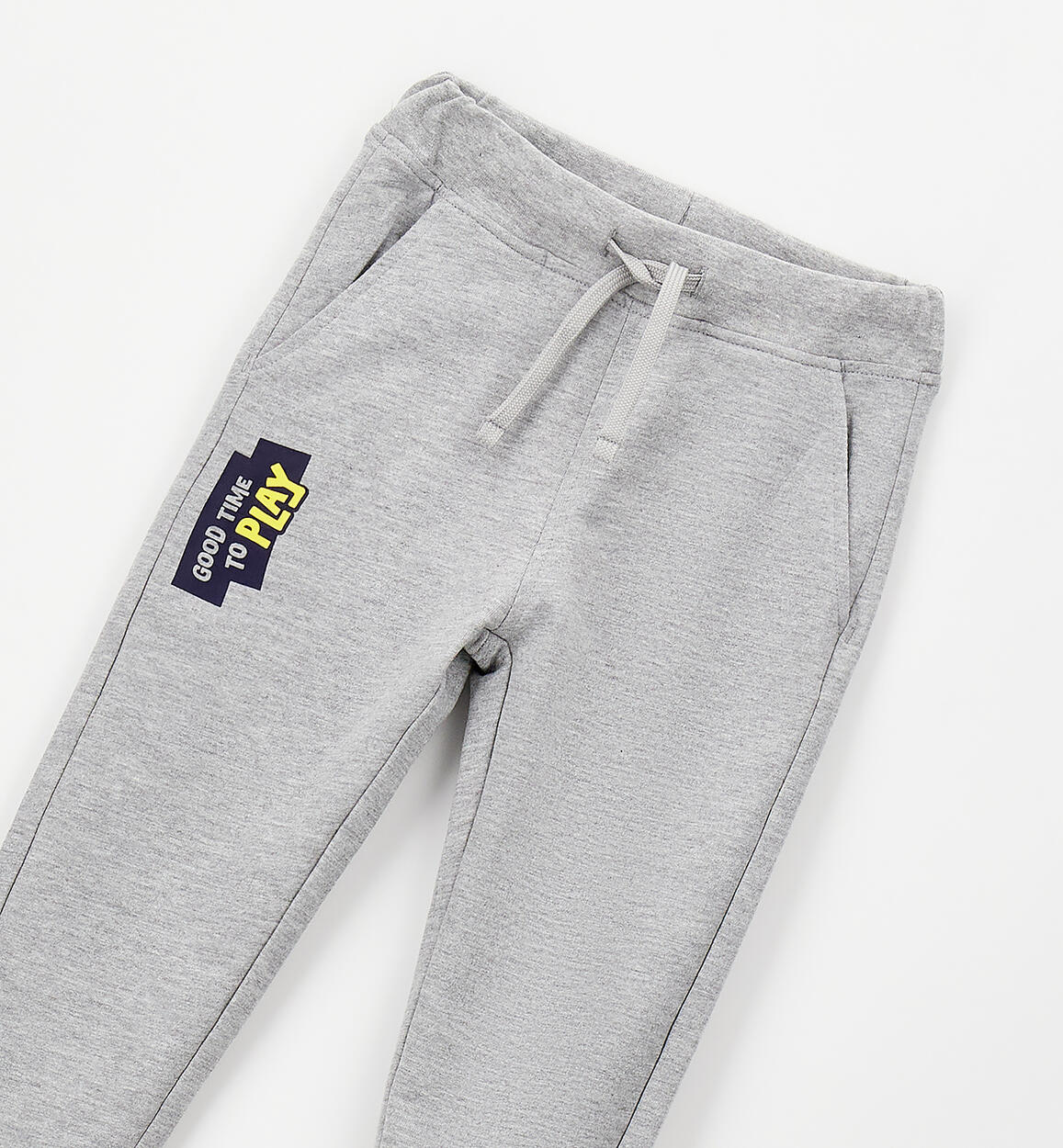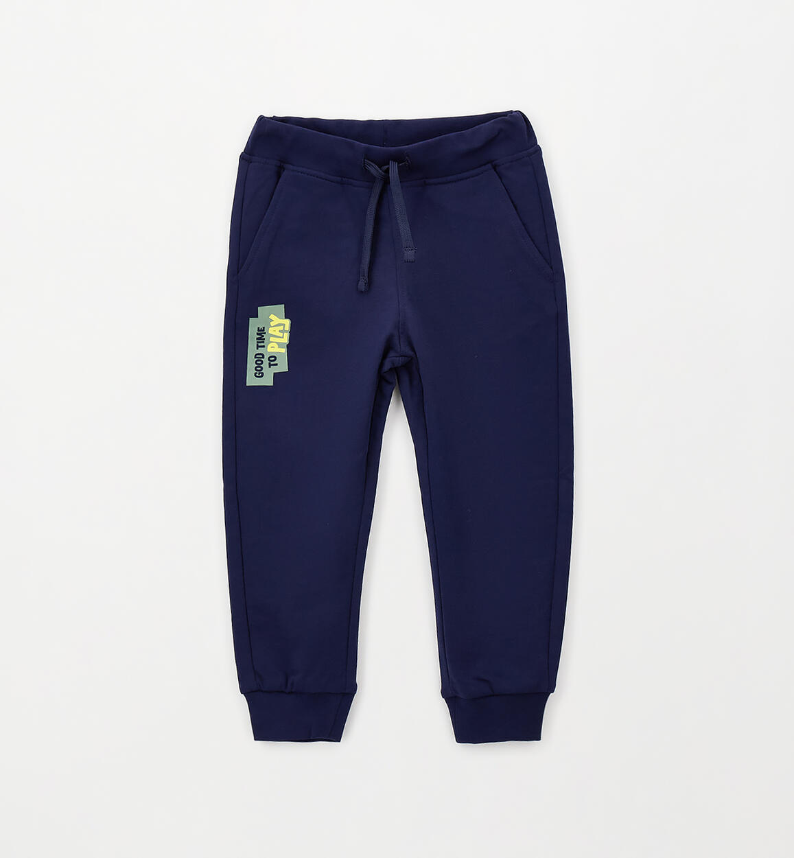 Pantalone tuta in felpa di cotone. Elastico in vita con coulisse. Tasche e stampa davanti. Polsino sul fondo gamba. Scegliendo i nostri prodotti in cotone, sostieni l'impegno di iDO nella missione Better Cotton. La fornitura di questo prodotto avviene tramite un sistema di bilancio di massa e potrebbe non contenere Better Cotton. Leggi di più su bettercotton.org/massbalance