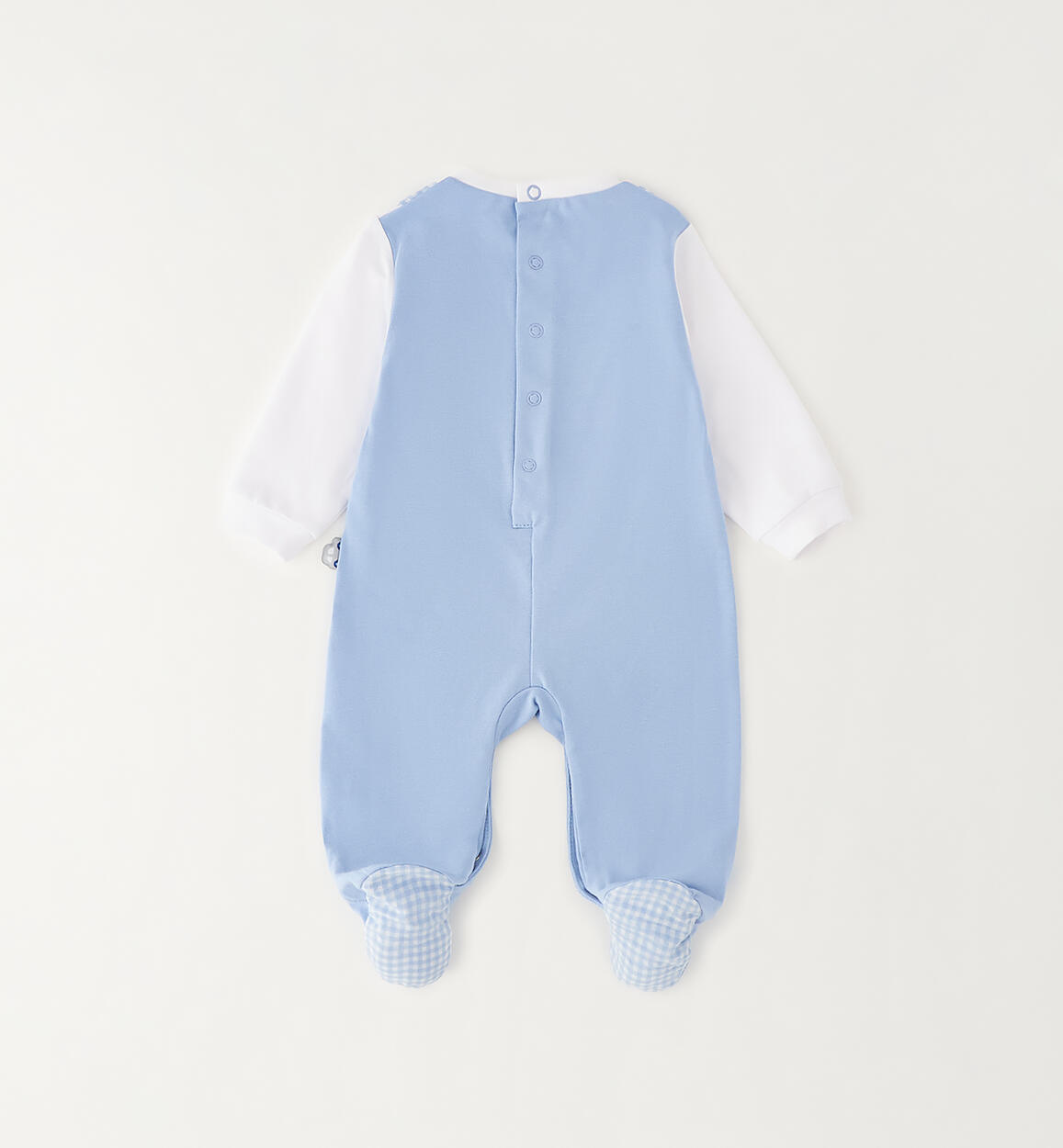 Tutina intera con piedini iDO per neonato da 0 a 18 mesi realizzata in jersey stretch di cotone. Modello finta salopette con stampa davanti e apertura sul retro e nel sottogamba con bottoni a pressione per agevolare il cambio e la vestizione. Scegliendo i nostri prodotti in cotone, sostieni il nostro investimento nella missione Better Cotton. La fornitura di questo prodotto avviene tramite un sistema di bilancio di massa e potrebbe non contenere Better Cotton. Leggi di più su bettercotton.org/massbalance
