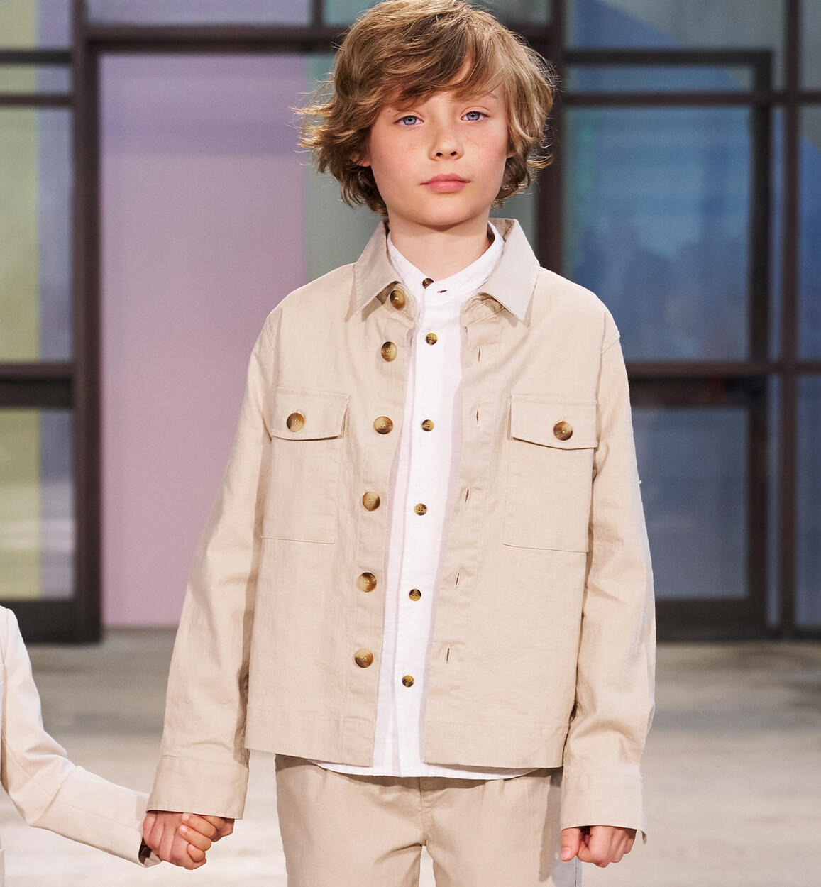 Canicia giacca per ragazzo iDO realizzata in lino e cotone con apertura tramite bottoni. Tasche davanti