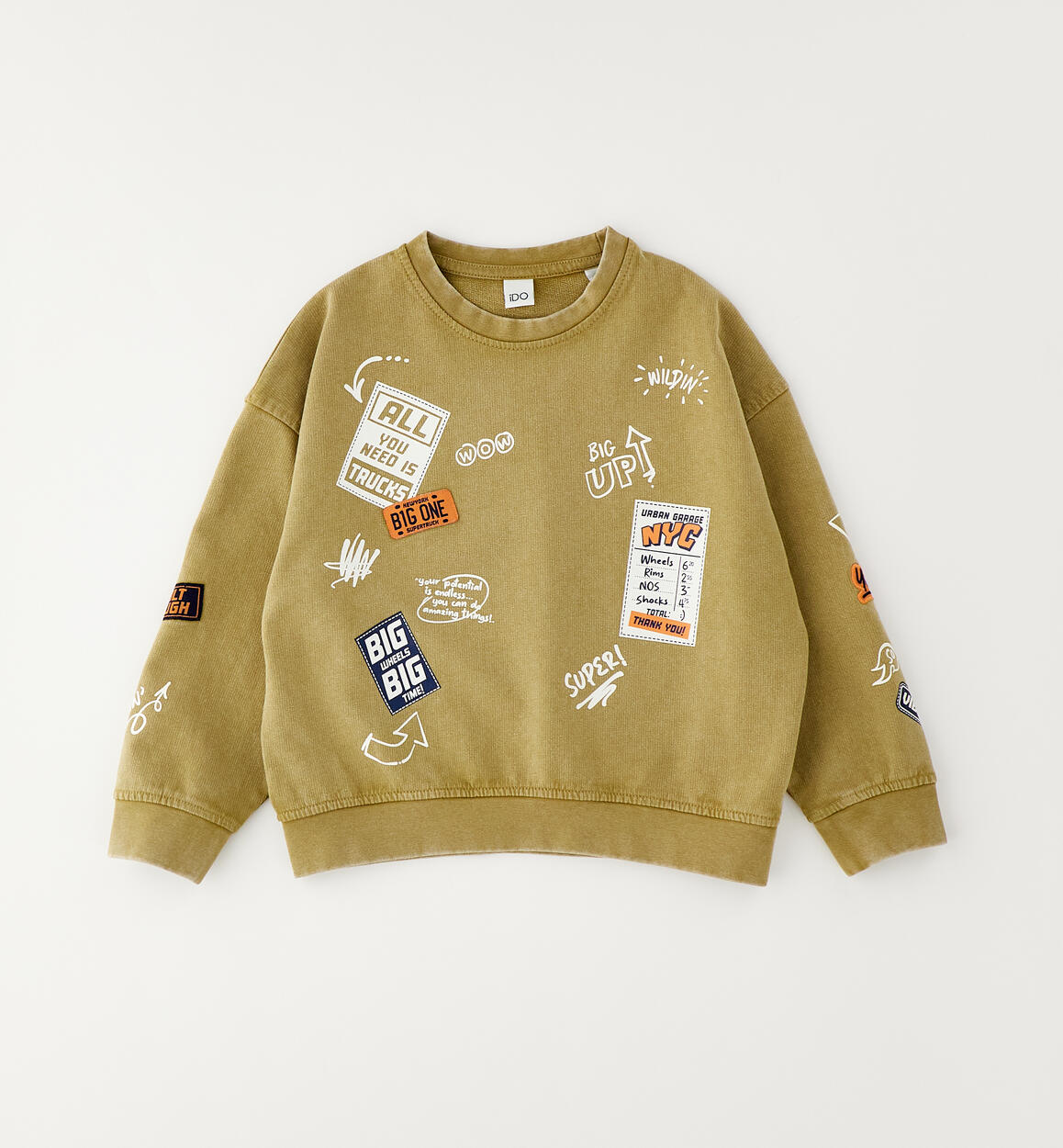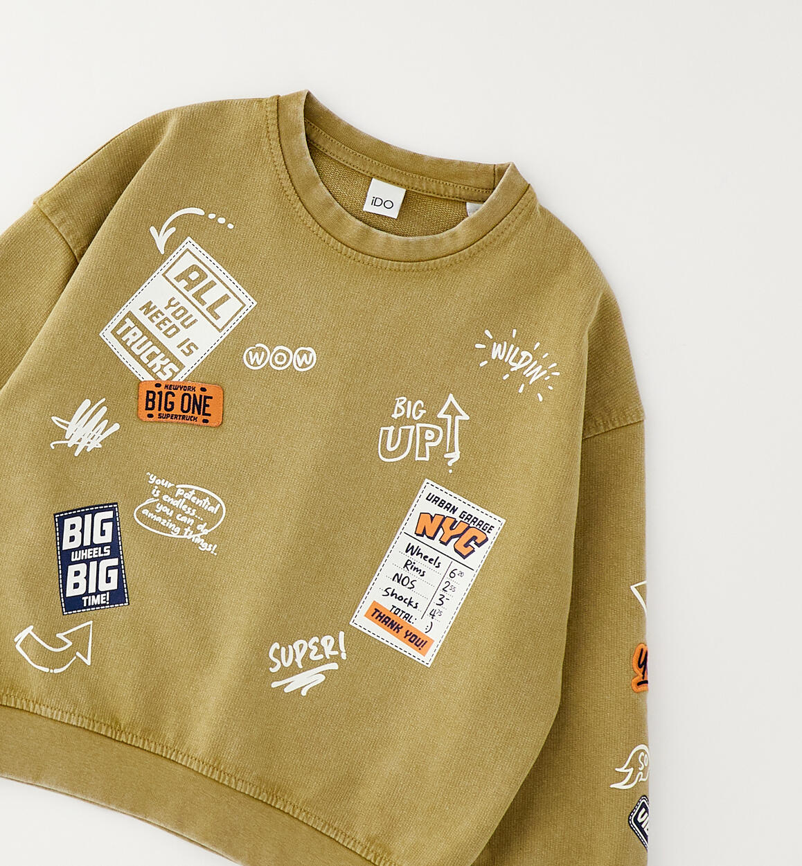 Felpa chiusa per bambino iDO realizzata in felpa leggera 100% cotone con stampe e badge in applicazione. Spalla calata, vestibilità over. Scegliendo i nostri prodotti in cotone, sostieni l'impegno di iDO nella missione Better Cotton. La fornitura di questo prodotto avviene tramite un sistema di bilancio di massa e potrebbe non contenere Better Cotton. Leggi di più su bettercotton.org/massbalance