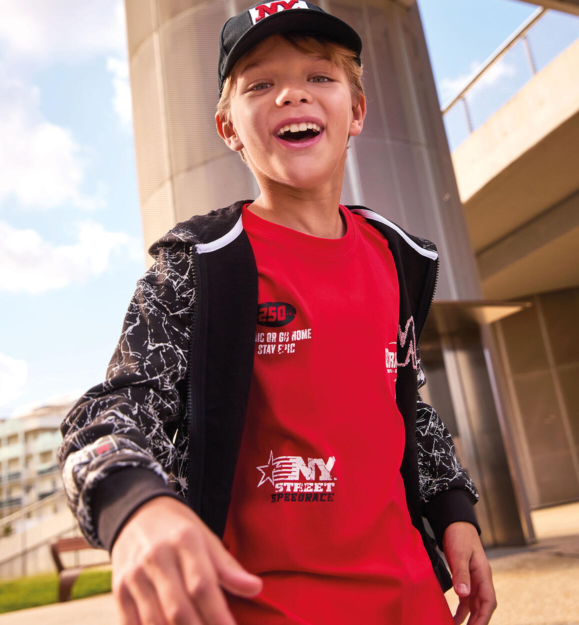 T-shirt per ragazzo iDO realizzata in jersey 100% cotone con stampe. Vestibilità over