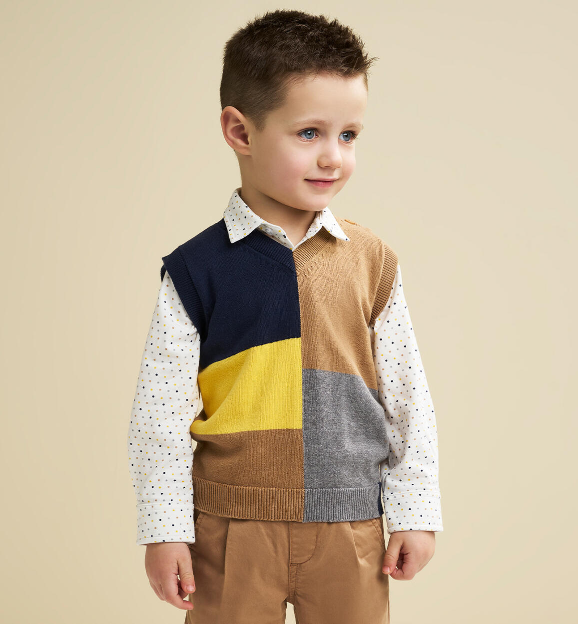Gilet a quadri bambino 9 mesi - 8 anni realizzato in tricot. Il modello presenta apertura sulla spalla con bottoni fino alla taglia 3 anni. Scegliendo i nostri prodotti in cotone, sostieni il nostro investimento nella missione Better Cotton. La fornitura di questo prodotto avviene tramite un sistema di bilancio di massa e potrebbe non contenere Better Cotton. Leggi di più su bettercotton.org/massbalance
