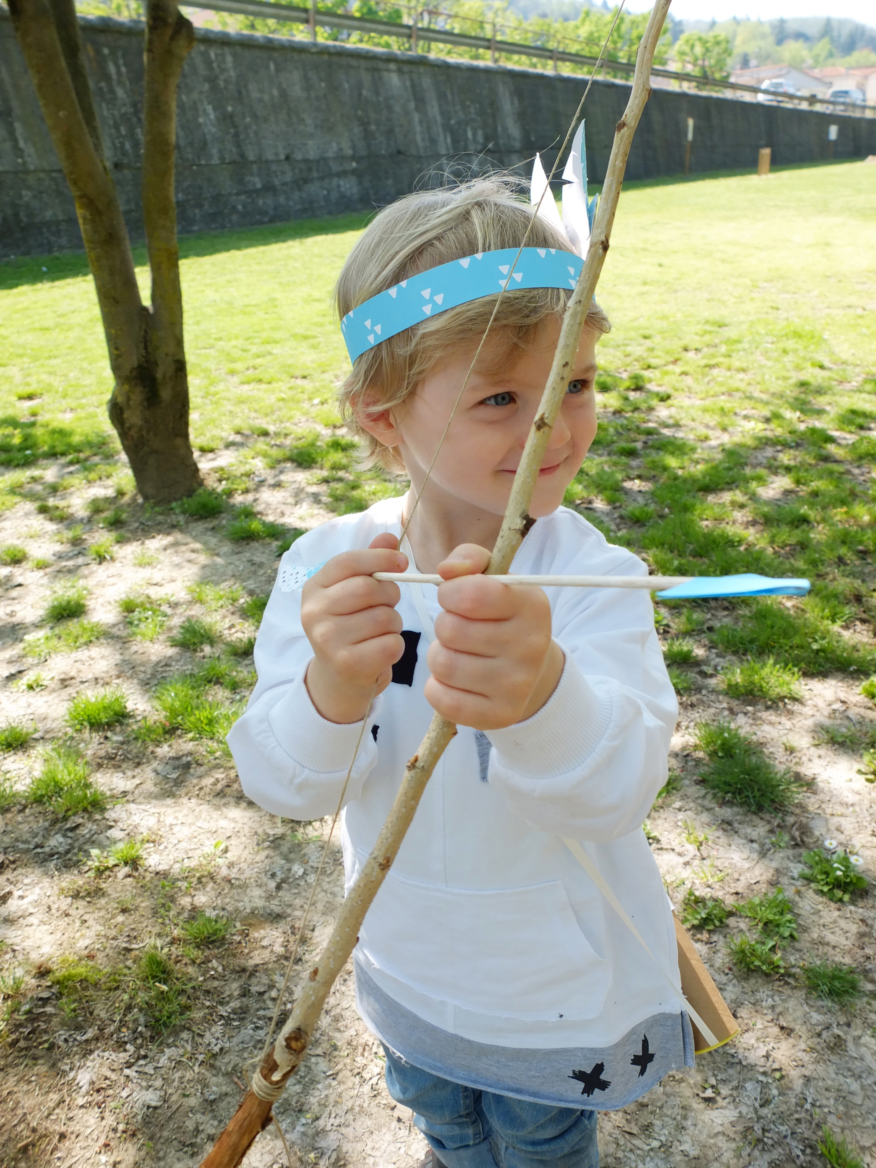 Ogni indiano che si rispetti ha bisogno di un copricapo, delle frecce, una faretra per le frecce e un arco tutto rigorosamente DIY perché con i bambini la creatività non deve mancare mai.