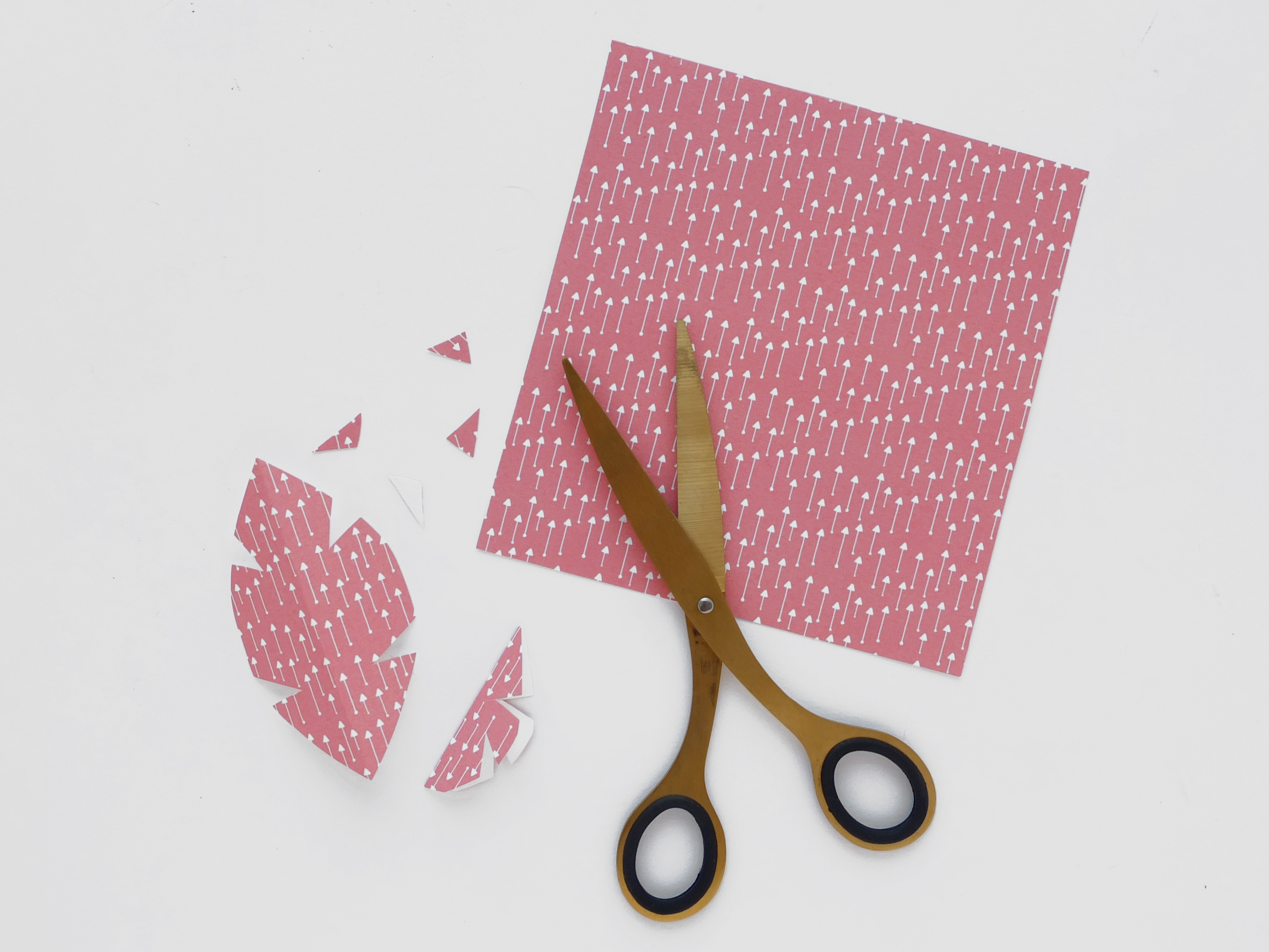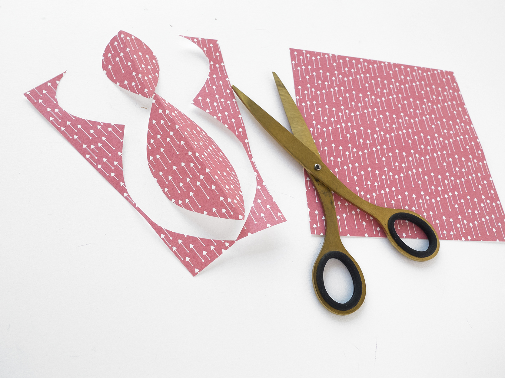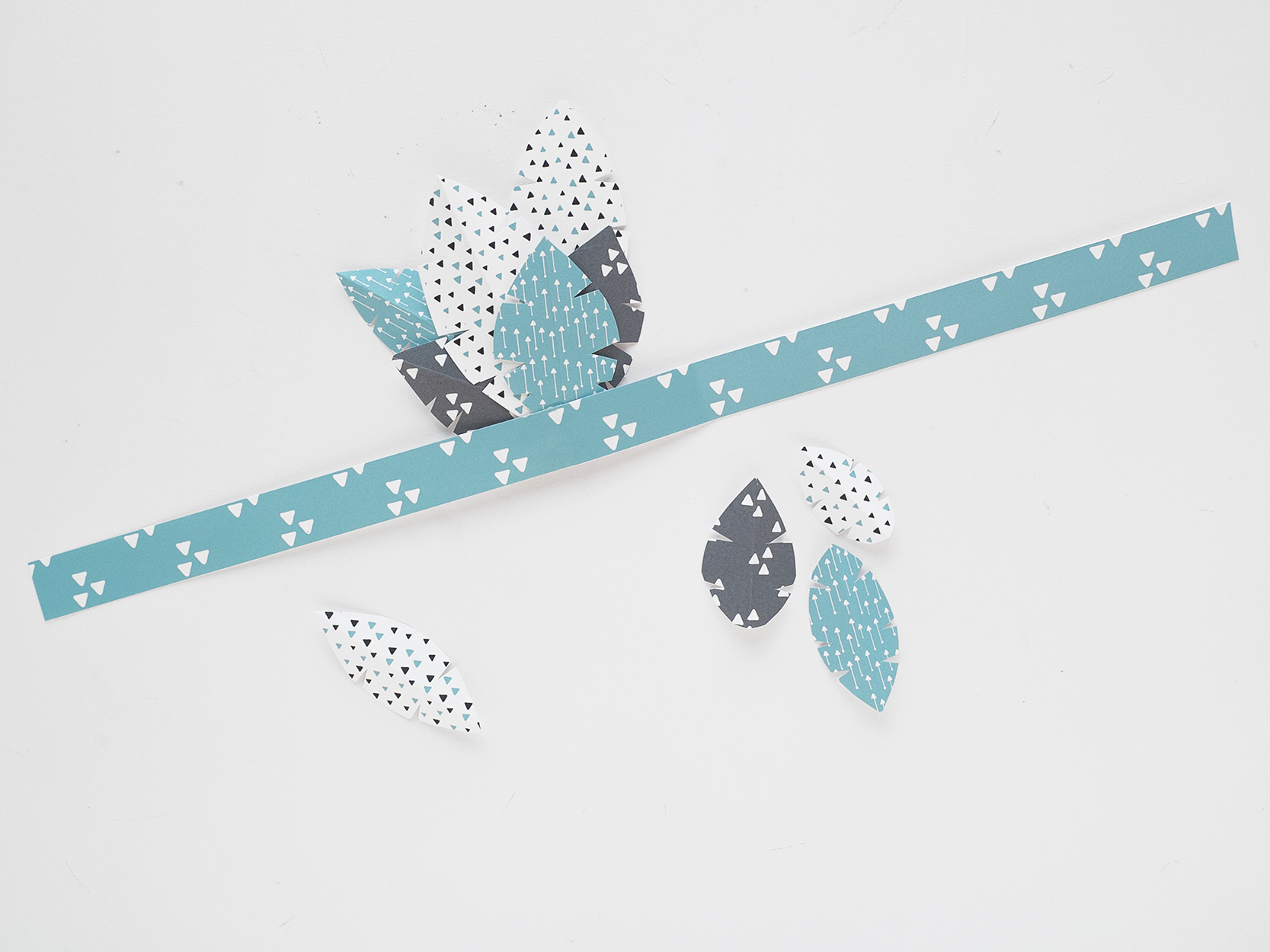 Ritagliate per ogni fantasia delle strisce larghe circa 3 cm, piegate a metà per il lato più lungo e mantenendo la piega verso l’interno, ritagliate la sagoma di una piuma.
