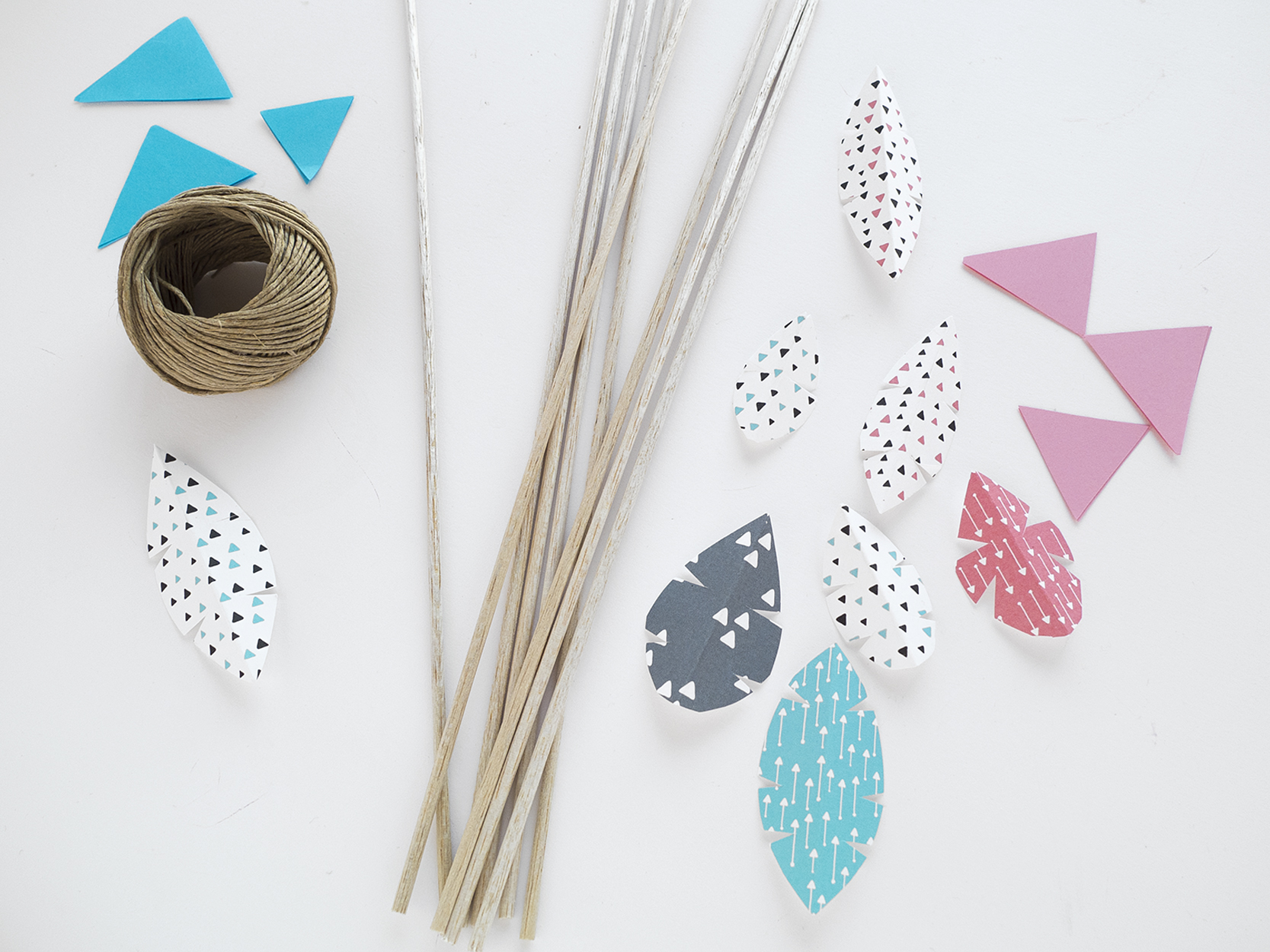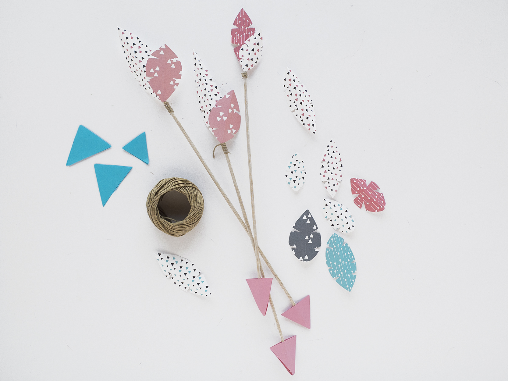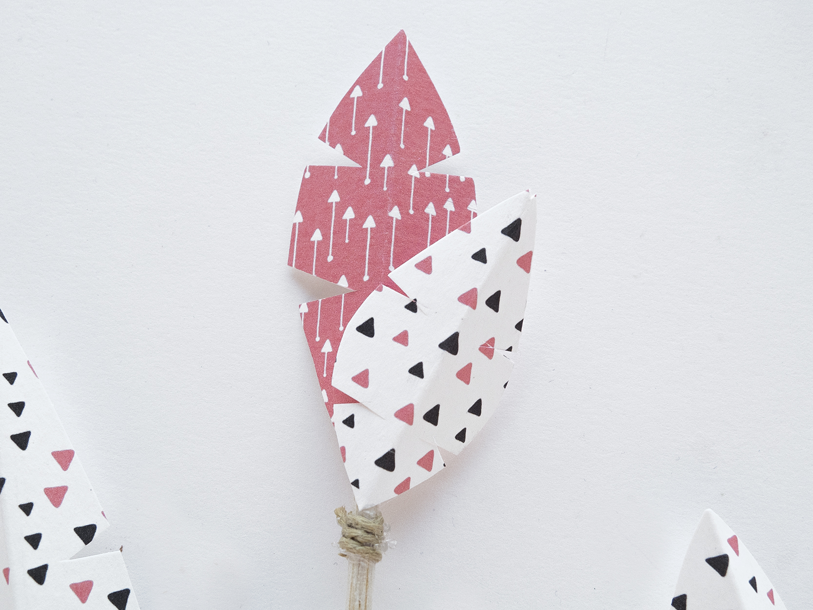 Per realizzare le frecce ritagliate dei 2 triangoli di carta colorata uguali per ogni freccia. Incollateli su una estremità del bastoncino di legno. Decorate l’altra estremità con due piume di diversa misura e rifinite con un pò di spago per dare un effetto più veritiero.