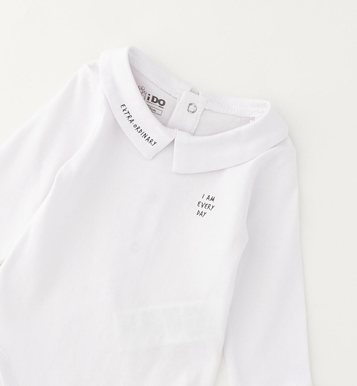 Body per bimbo iDO da 1 a 24 mesi realizzato in jersey 100% cotone. Modello a manica lunga con colletto e piccola stampa. Aapertura sul retro e nel sottogamba con bottoni per agevolare il cambio e la vestizione. Scegliendo i nostri prodotti in cotone, sostieni il nostro investimento nella missione Better Cotton. La fornitura di questo prodotto avviene tramite un sistema di bilancio di massa e potrebbe non contenere Better Cotton. Leggi di più su bettercotton.org/massbalance