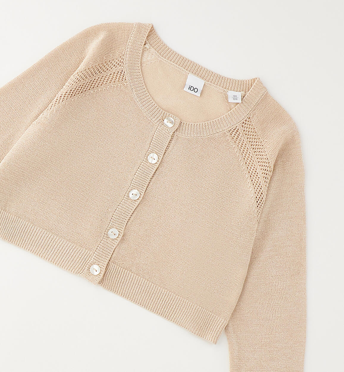 Cardigan per bambina iDO realizzato in morbido tricot lurex con particolare lavorazione. Apertura con bottoni
