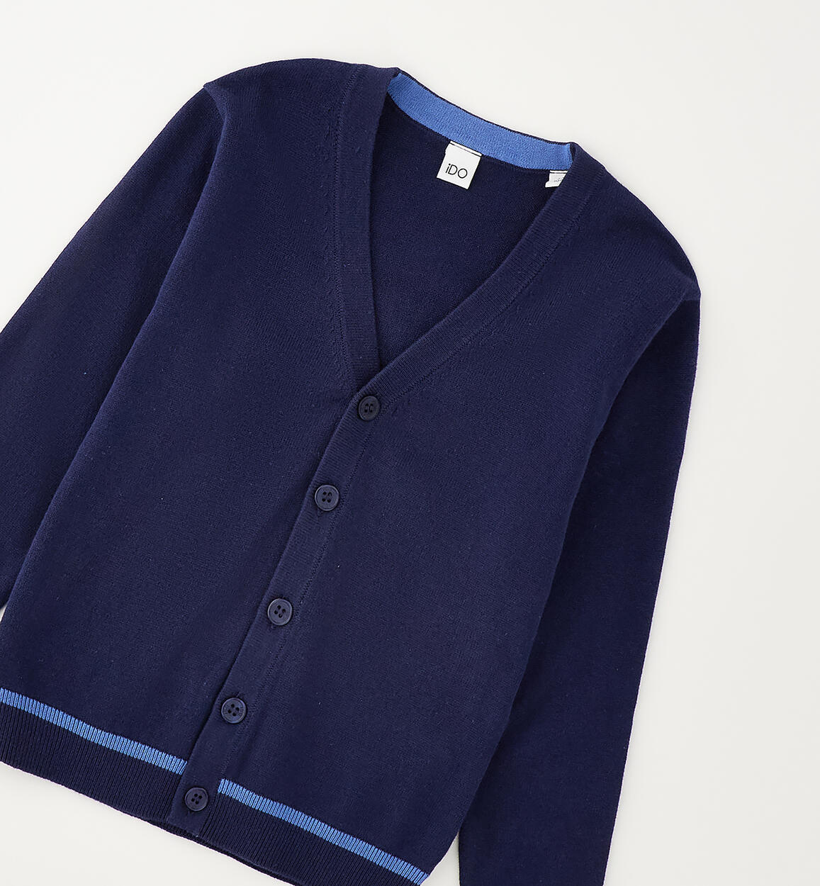 Cardigan per bambino iDO realizzato in tricot 100% cotone con dettagli a contrasto colore. Scegliendo i nostri prodotti in cotone, sostieni l'impegno di iDO nella missione Better Cotton. La fornitura di questo prodotto avviene tramite un sistema di bilancio di massa e potrebbe non contenere Better Cotton. Leggi di più su bettercotton.org/massbalance