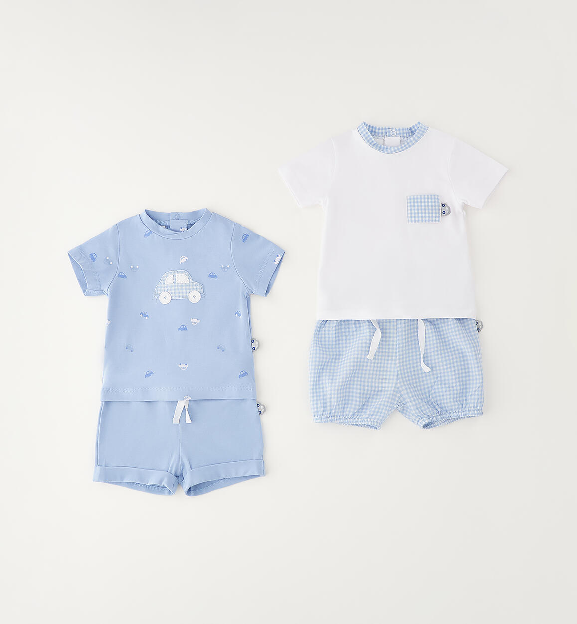 Kit iDO per neonato da 1 a 24 mesi realizzato in cotone, composto da due graziosi completini. La t-shirt ha l'apertura sul retro con bottoni a pressione e il pantaloncino ha l'elastico in vita. Scegliendo i nostri prodotti in cotone, sostieni il nostro investimento nella missione Better Cotton. La fornitura di questo prodotto avviene tramite un sistema di bilancio di massa e potrebbe non contenere Better Cotton. Leggi di più su bettercotton.org/massbalance