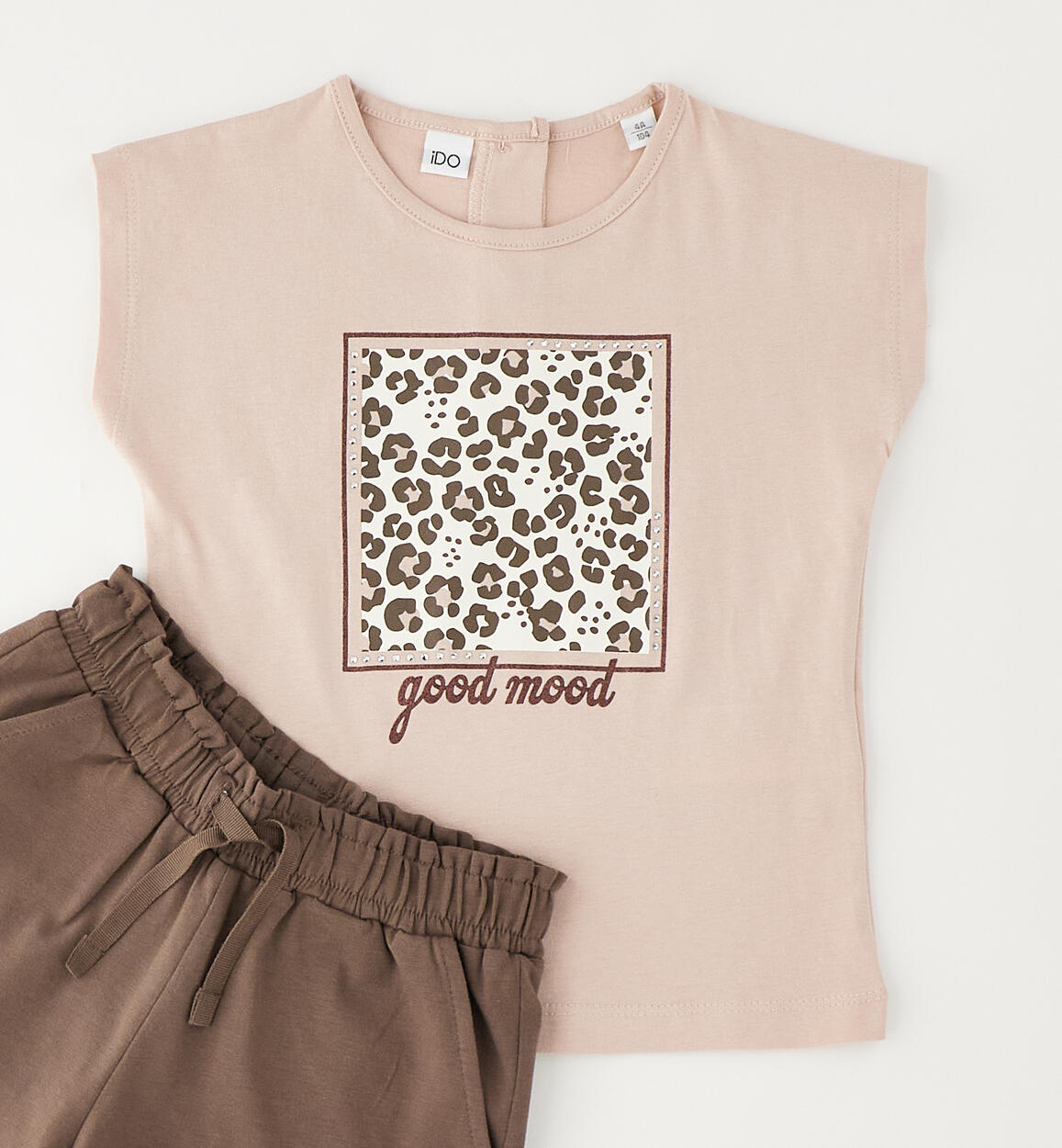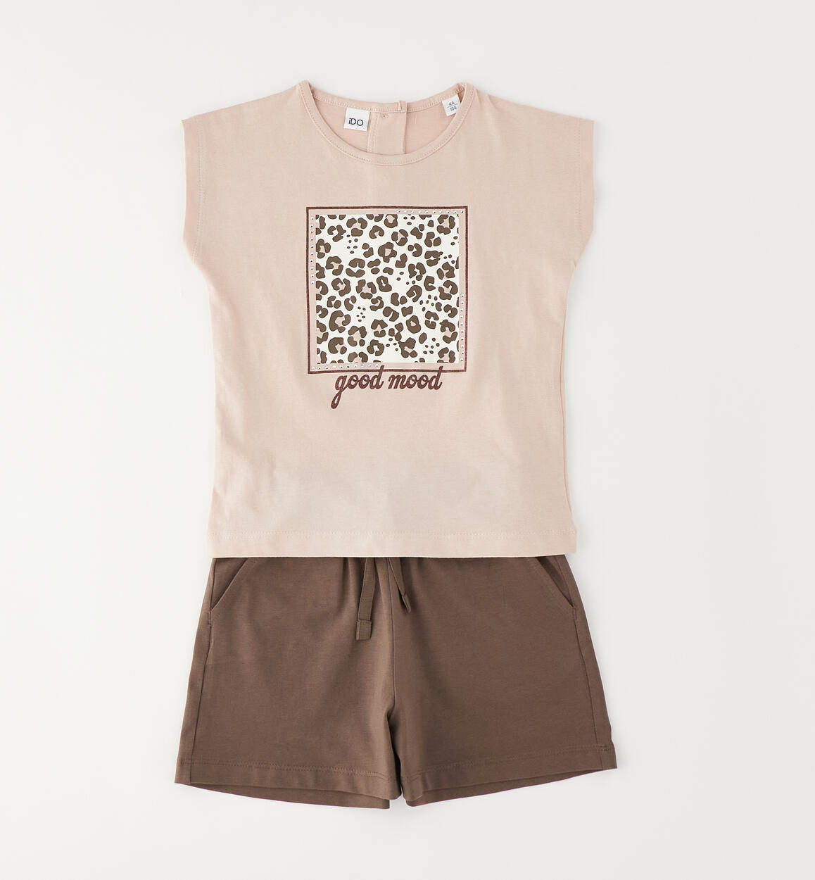 Completo manica corta per bambina iDO realizzato in jersey di cotone. T-shirt con stampa animalier, pantaloncino corto con elastico in vita e coulisse. Scegliendo i nostri prodotti in cotone, sostieni l'impegno di iDO nella missione Better Cotton. La fornitura di questo prodotto avviene tramite un sistema di bilancio di massa e potrebbe non contenere Better Cotton. Leggi di più su bettercotton.org/massbalance