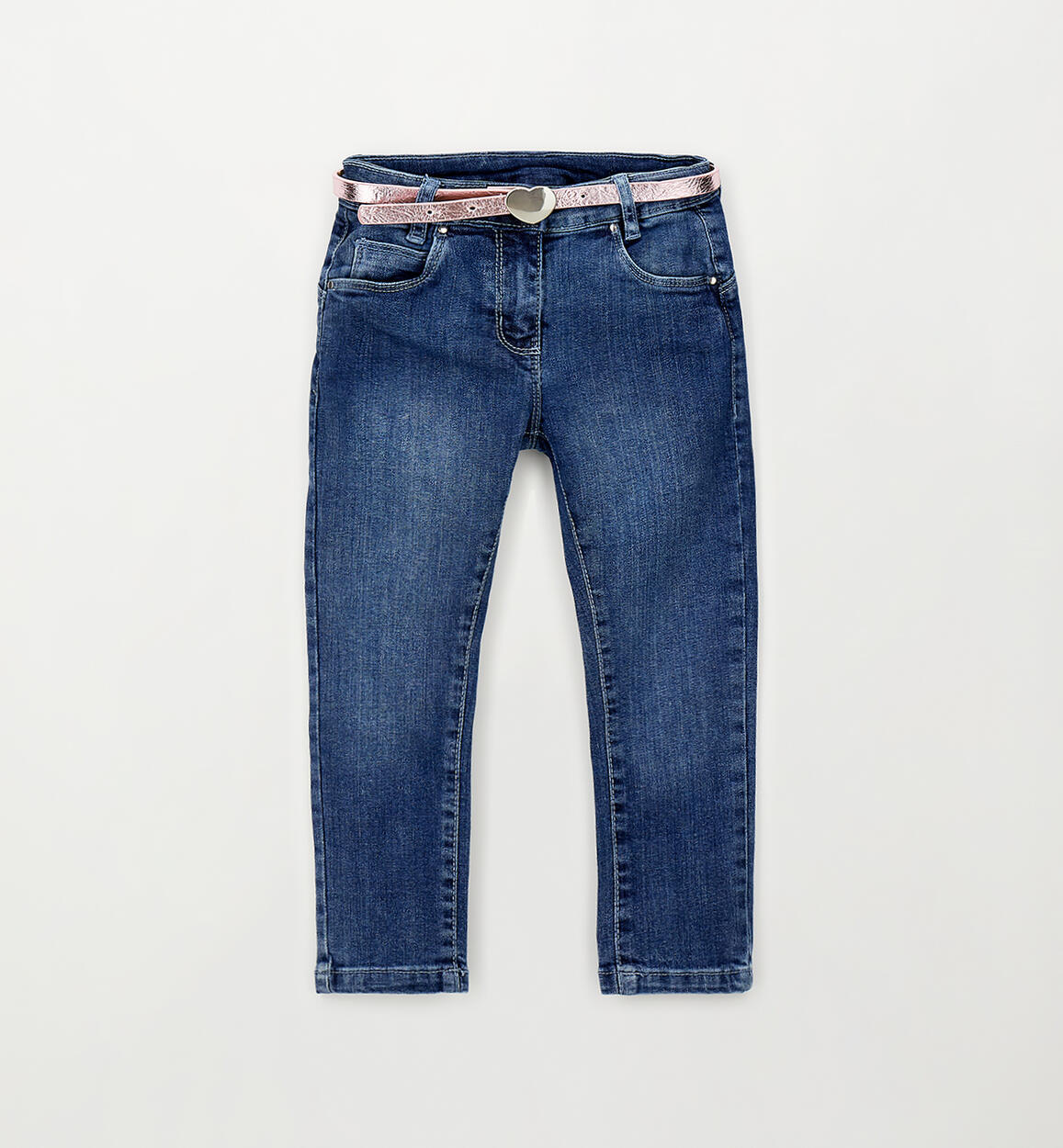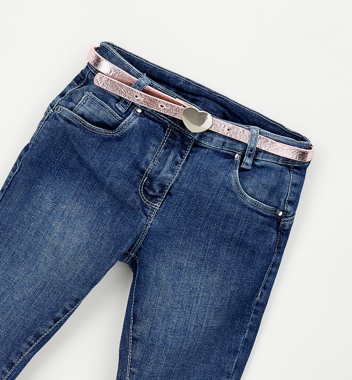 Pantalone lungo in denim stretch di cotone per bambina iDO, modello slim. Apertura con zip e bottone. Vita regolabile con elastico asolato interno. Cintura con cuore in abbinamento. Scegliendo i nostri prodotti in cotone, sostieni l'impegno di iDO nella missione Better Cotton. La fornitura di questo prodotto avviene tramite un sistema di bilancio di massa e potrebbe non contenere Better Cotton. Leggi di più su bettercotton.org/massbalance