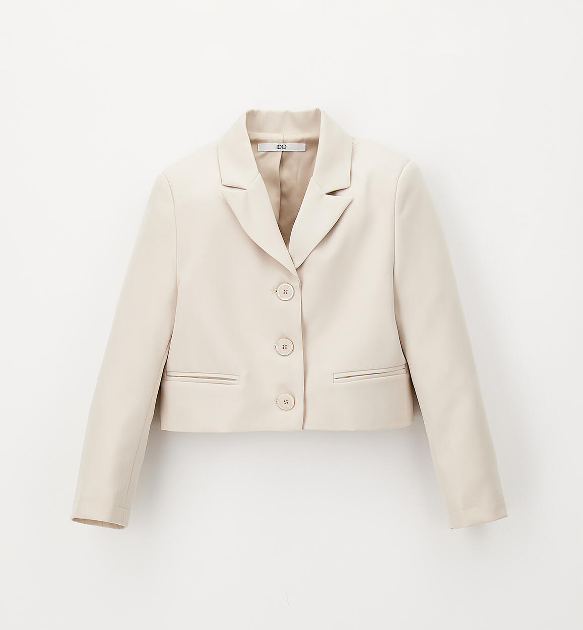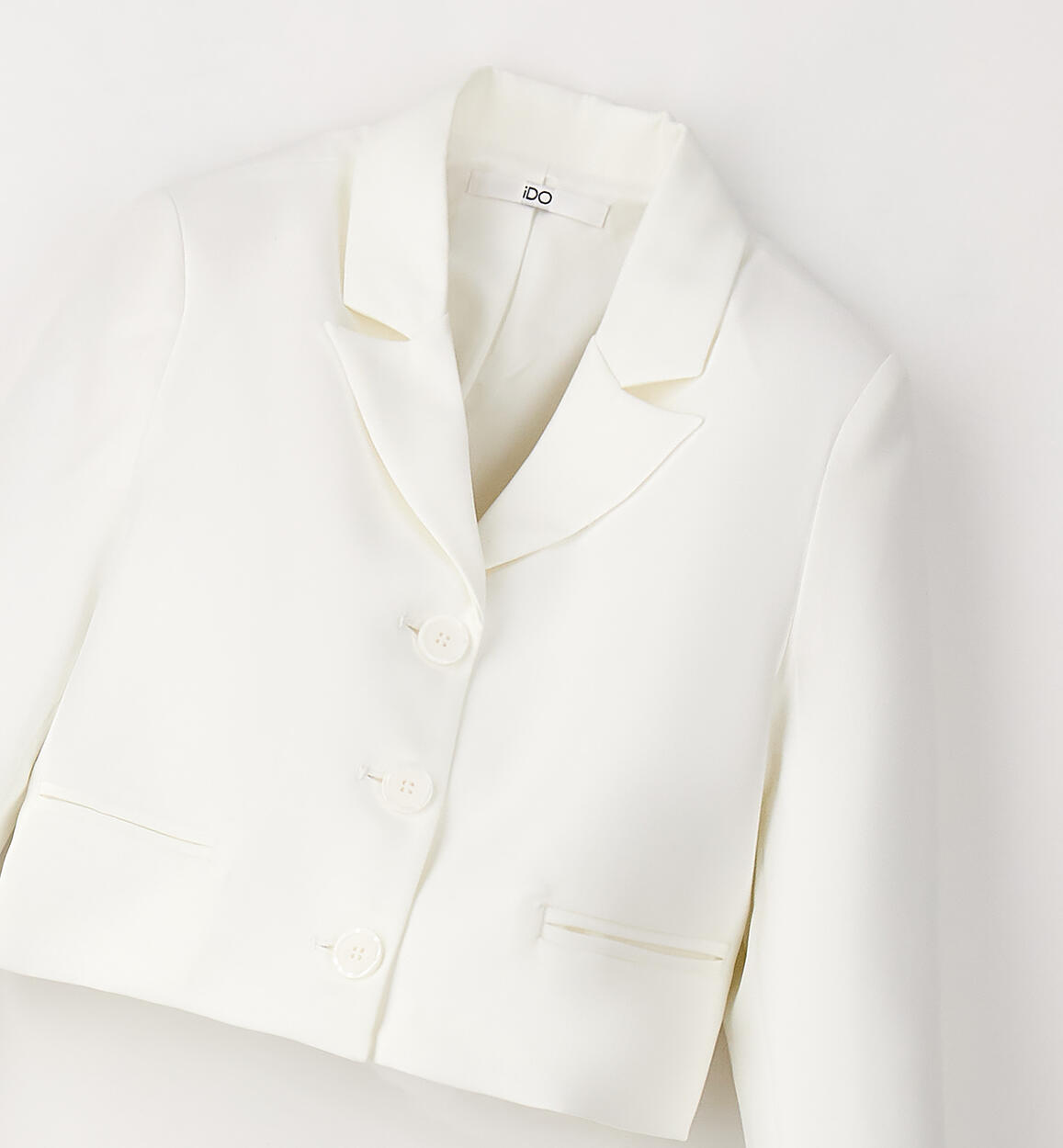 Elegante giacca per ragazza iDO realizzata in speciale twill stretch con fodera in satin. Apertura con bottoni. Modello crop