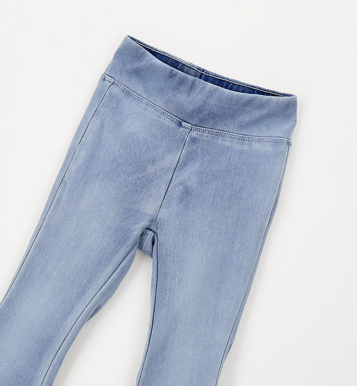 Pantalone lungo in denim per bambina iDO realizzato in denim maglia di cotone. Leggings a campana con elastico in vita. Scegliendo i nostri prodotti in cotone, sostieni l'impegno di iDO nella missione Better Cotton. La fornitura di questo prodotto avviene tramite un sistema di bilancio di massa e potrebbe non contenere Better Cotton. Leggi di più su bettercotton.org/massbalance