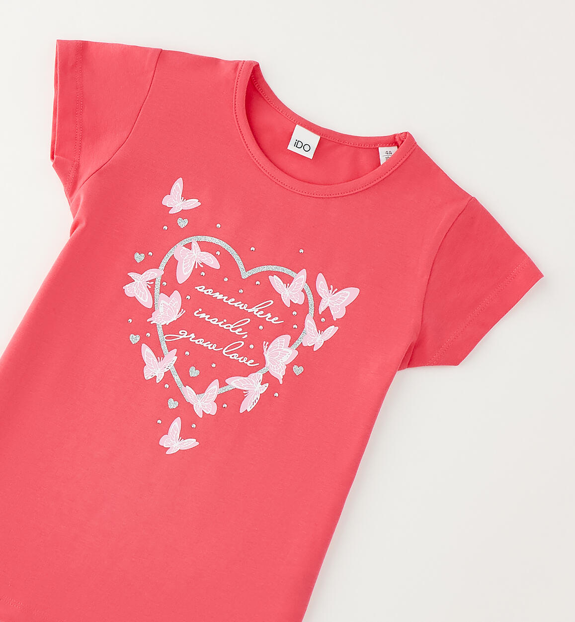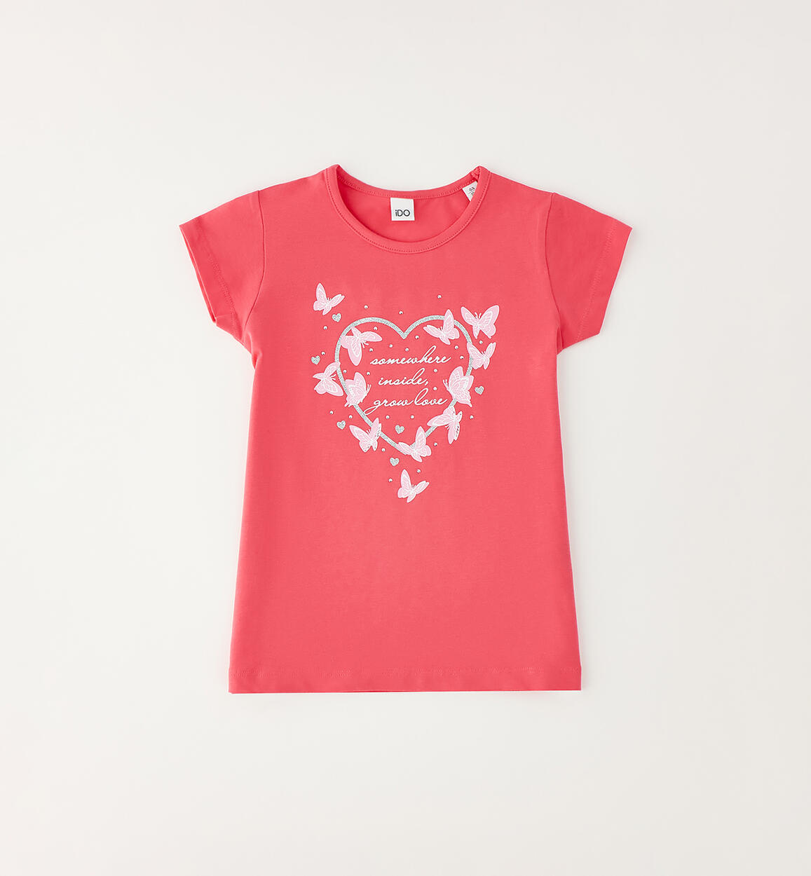 T-shirt per bambina iDO in jersey stretch di cotone con stampa e strass. Scegliendo i nostri prodotti in cotone, sostieni l'impegno di iDO nella missione Better Cotton. La fornitura di questo prodotto avviene tramite un sistema di bilancio di massa e potrebbe non contenere Better Cotton. Leggi di più su bettercotton.org/massbalance