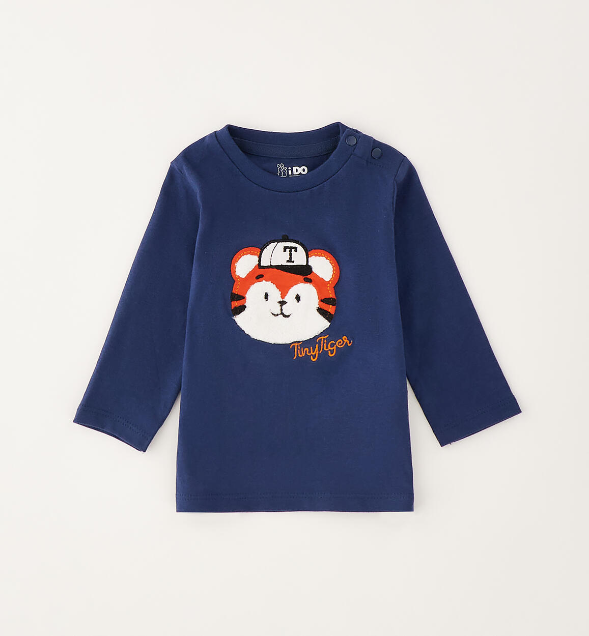 Maglietta a manica lunga per bimbo iDO da 1 a 24 mesi realizzata in jersey 100% cotone. Apertura sulla spalla con bottoni a pressione. Davanti è arricchita da ricamo e applicazione ricamo. Scegliendo i nostri prodotti in cotone, sostieni il nostro investimento nella missione Better Cotton. La fornitura di questo prodotto avviene tramite un sistema di bilancio di massa e potrebbe non contenere Better Cotton. Leggi di più su bettercotton.org/massbalance