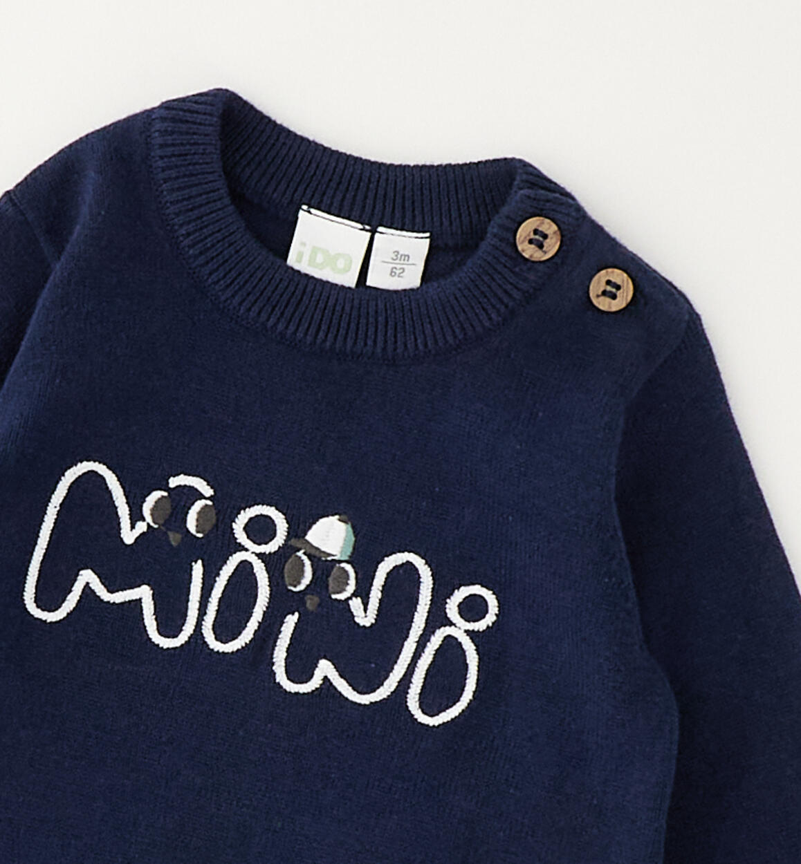 Maglionicno per bimbo iDO da 1 a 24 mesi realizzato in tricot 100% cotone. Il modello è arricchito da ricamo e apertura sulla spalla con bottoni. Scegliendo i nostri prodotti in cotone, sostieni il nostro investimento nella missione Better Cotton. La fornitura di questo prodotto avviene tramite un sistema di bilancio di massa e potrebbe non contenere Better Cotton. Leggi di più su bettercotton.org/massbalance