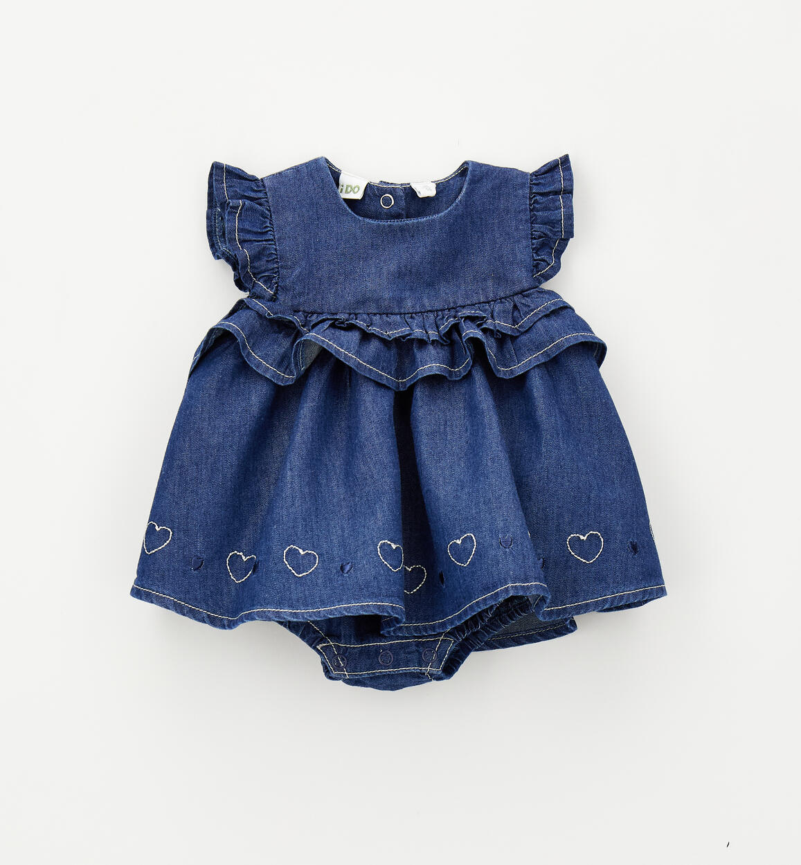 Pagliaccetto iDO per bimba da 1 a 24 mesi realizzato in cotone e lyocell. Modello con mutandina e apertura sul retro e nel sottogamba con bottoni a pressione. Ricamo cuori sul fondo. Scegliendo i nostri prodotti in cotone, sostieni il nostro investimento nella missione Better Cotton. La fornitura di questo prodotto avviene tramite un sistema di bilancio di massa e potrebbe non contenere Better Cotton. Leggi di più su bettercotton.org/massbalance