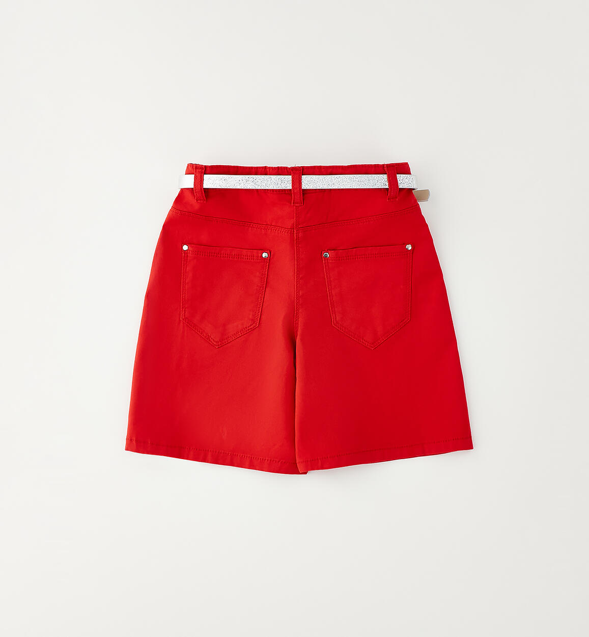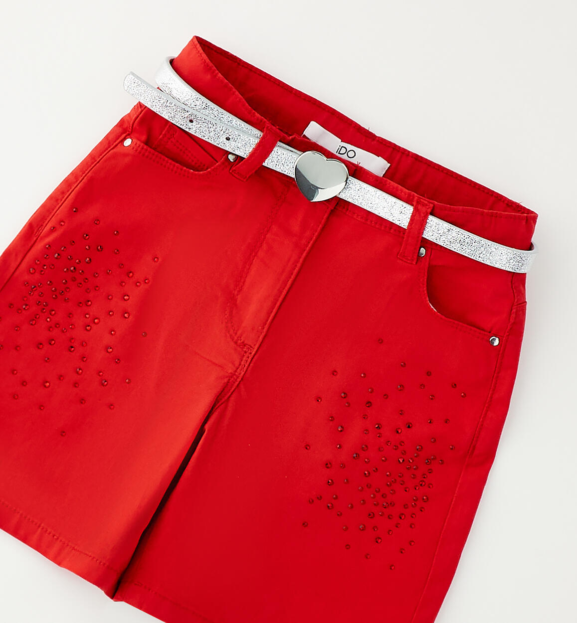 Pantalone corto per bambina iDO realizzato in twill stretch di cotone con strass. Apertura con zip e bottone. Vita regolabile con elastico asolato interno. Cintura in abbinamento. Scegliendo i nostri prodotti in cotone, sostieni l'impegno di iDO nella missione Better Cotton. La fornitura di questo prodotto avviene tramite un sistema di bilancio di massa e potrebbe non contenere Better Cotton. Leggi di più su bettercotton.org/massbalance