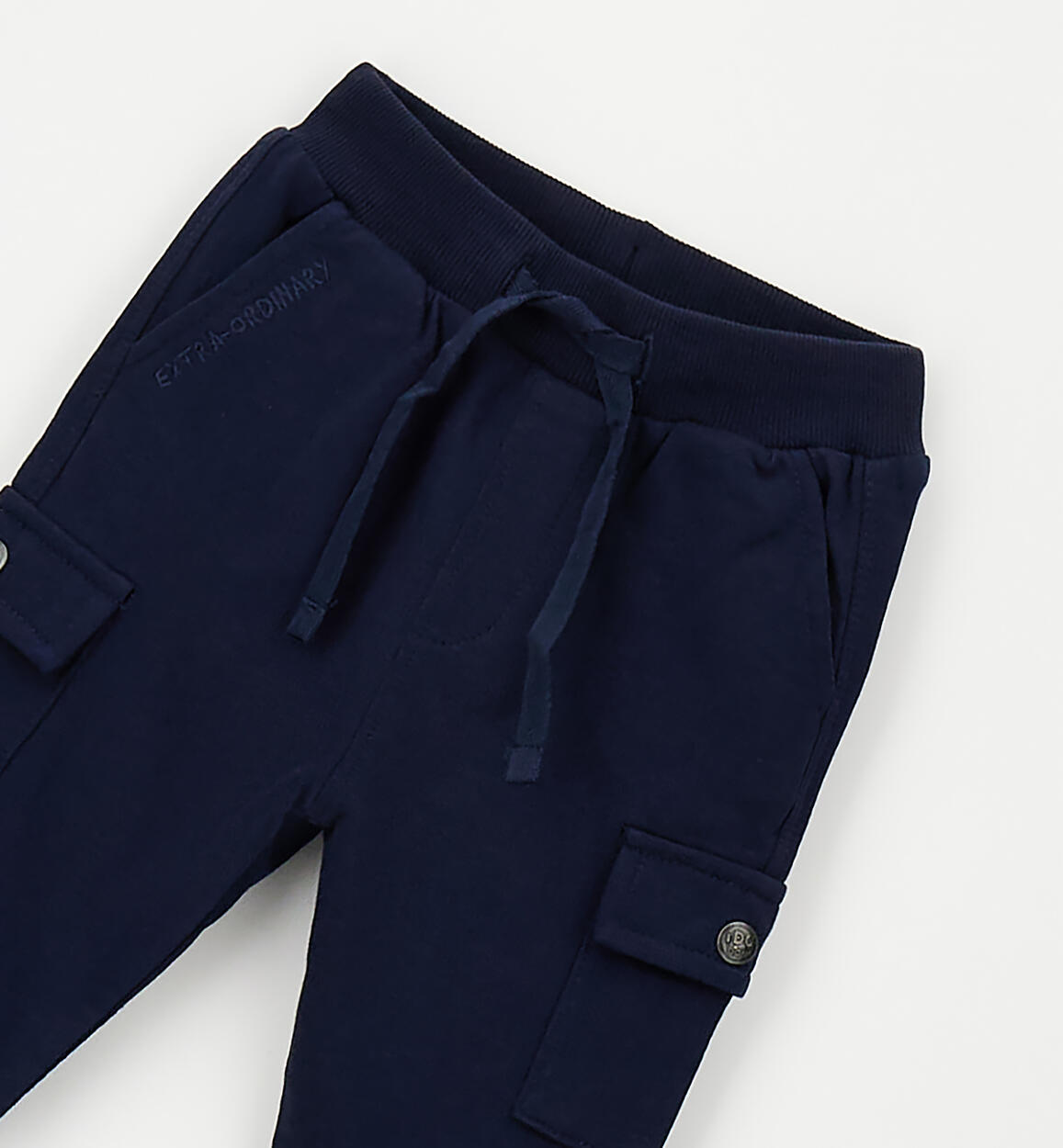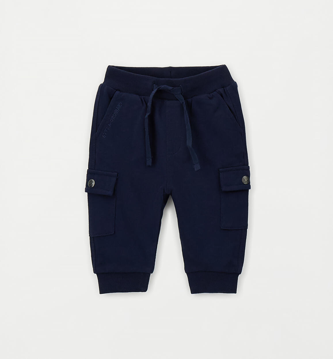 Pantaloni tuta iDO per bimbo da 1 a 24 mesi in felpa 100% cotone. Modello cargo con elastico in vita e coulisse e polsino sul fondo gamba. Scegliendo i nostri prodotti in cotone, sostieni il nostro investimento nella missione Better Cotton. La fornitura di questo prodotto avviene tramite un sistema di bilancio di massa e potrebbe non contenere Better Cotton. Leggi di più su bettercotton.org/massbalance