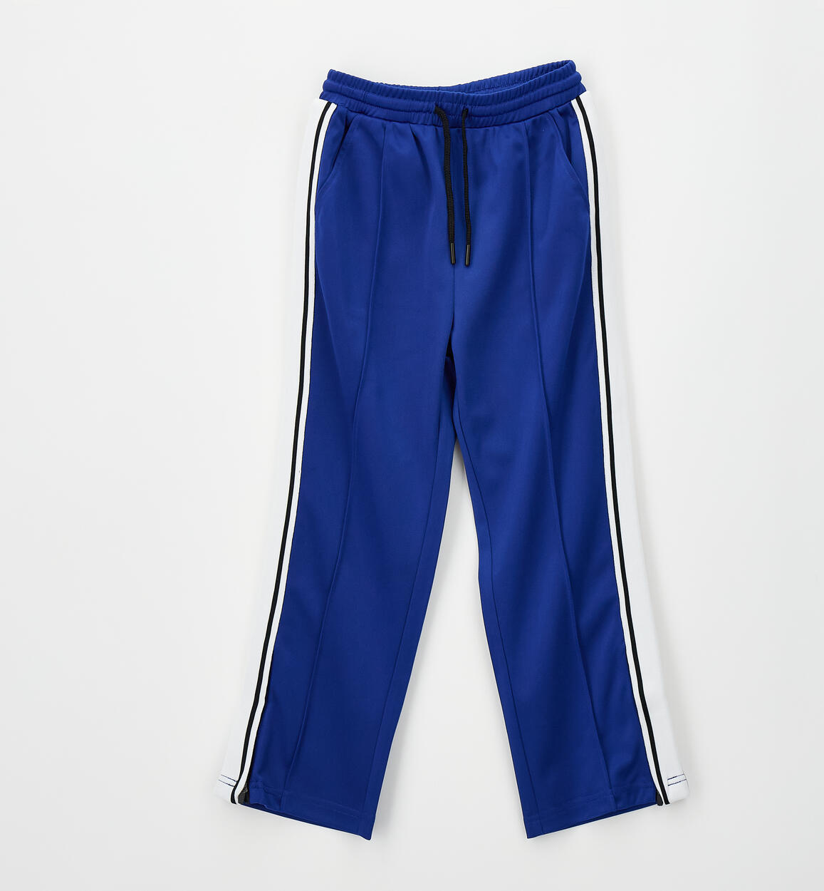 Pantalone lungo per ragazzo iDO realizzati in tessuto acetato con bande laterali. Elastico in vita con coulisse. Vestibilità over