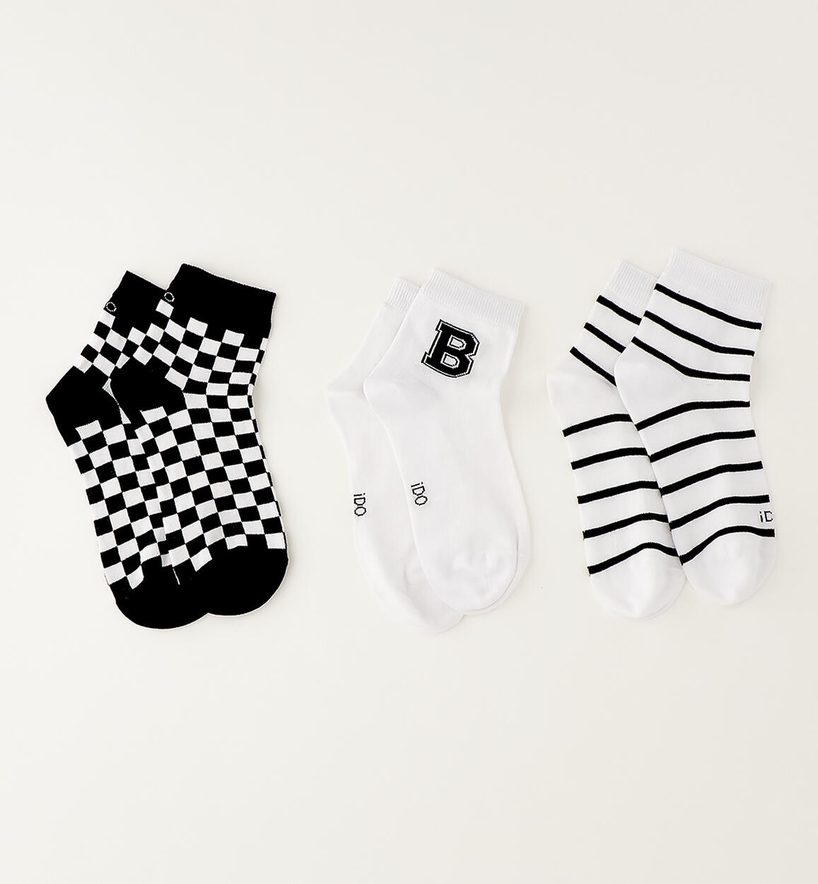 Calzini per ragazzo iDO realizzati in spugna di cotone. Confezione composta da tra paia di calzini varie fantasie