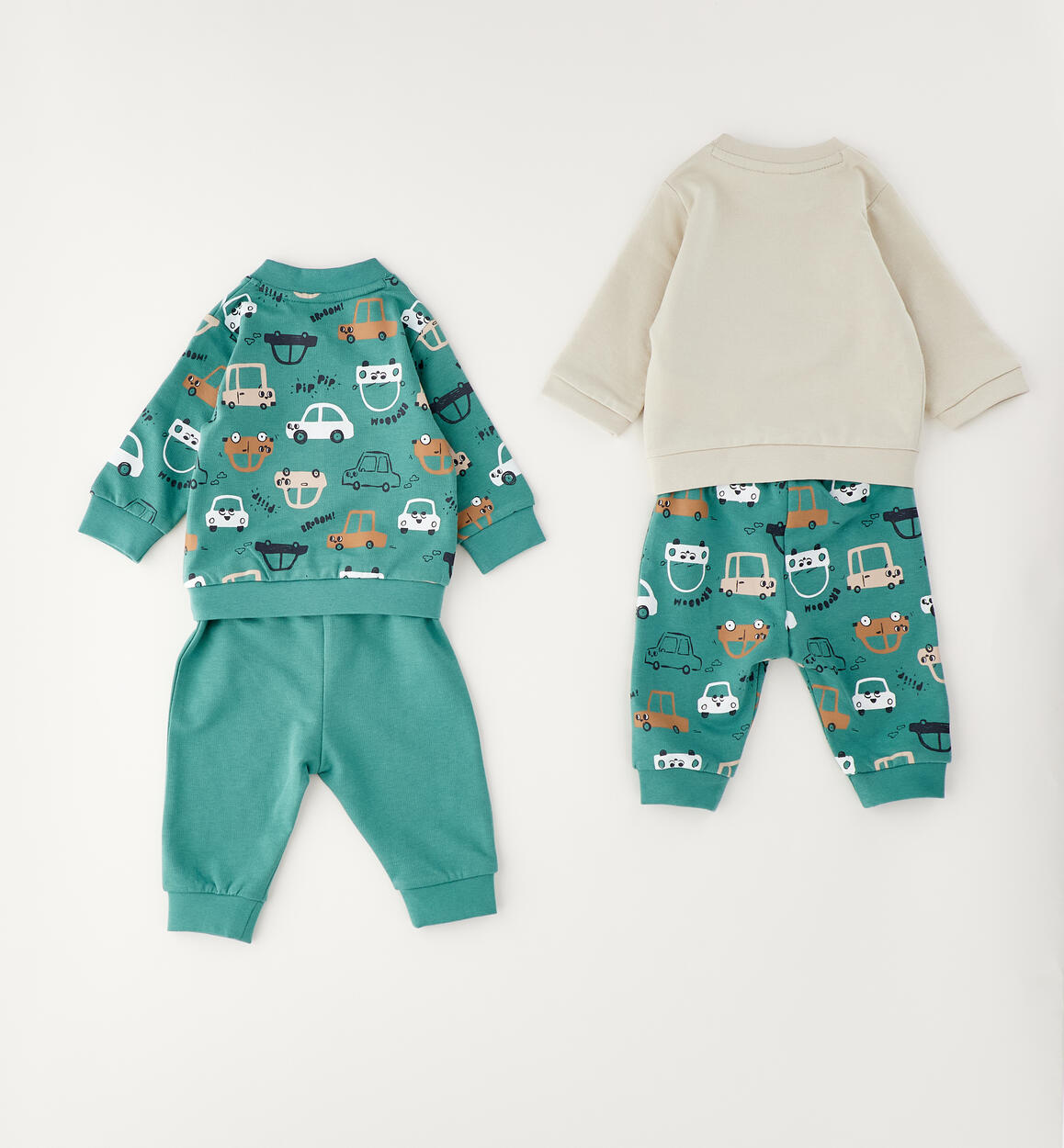 Set due tute per bimbo iDO da 1 a 24 mesi realizzate in felpa 100% cotone. Un modello è girocollo con tasca davanti, applicazione ricamo e apertura sulla spalla con bottoni a pressione. Pantalone con elastico in vita e fantasia all over. L'altro modello ha la felpa con apertura tramite zip e fantasia all over. Pantalone con elastico in vita e coulisse. Scegliendo i nostri prodotti in cotone, sostieni il nostro investimento nella missione Better Cotton. La fornitura di questo prodotto avviene tramite un sistema di bilancio di massa e potrebbe non contenere Better Cotton. Leggi di più su bettercotton.org/massbalance