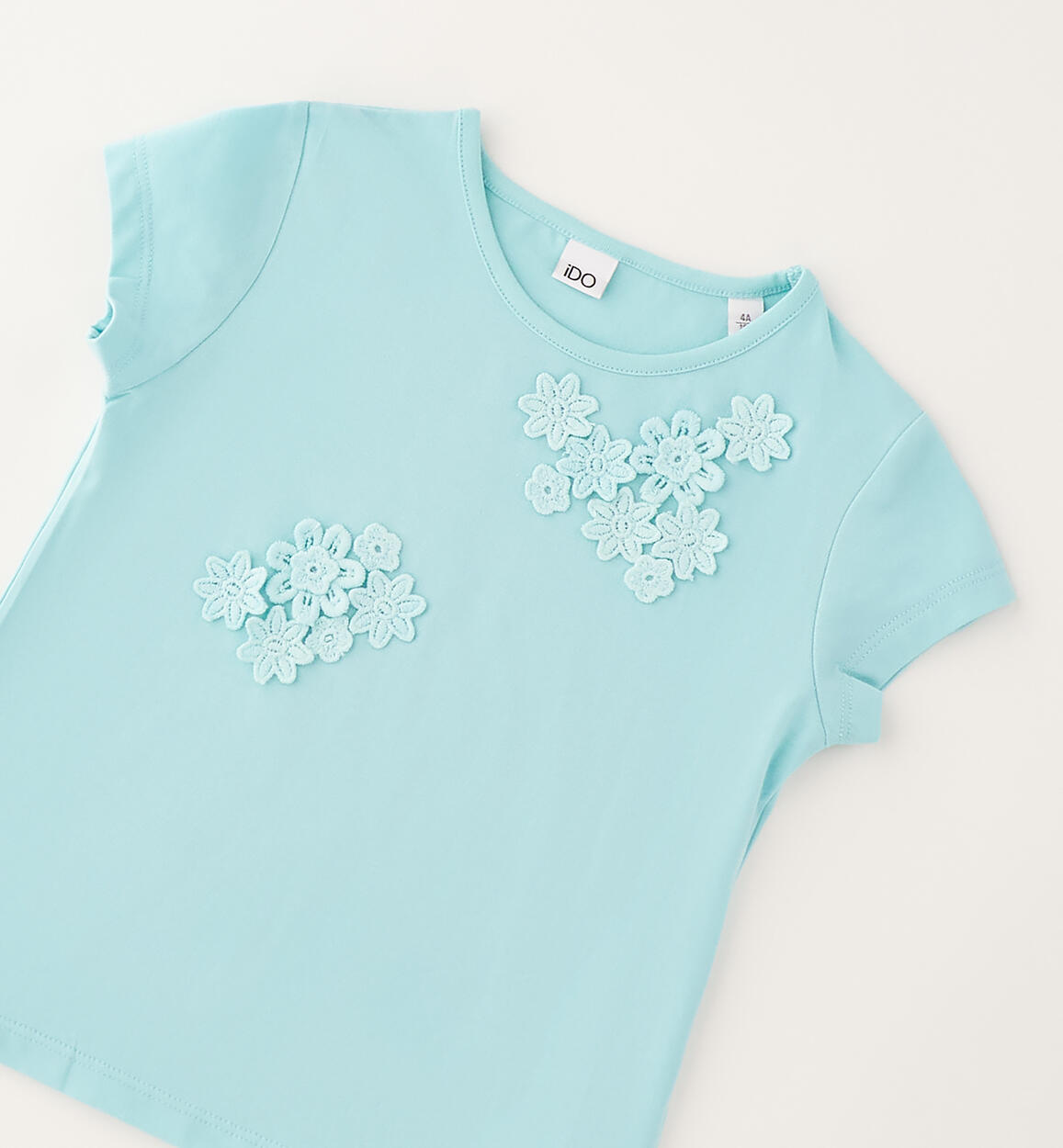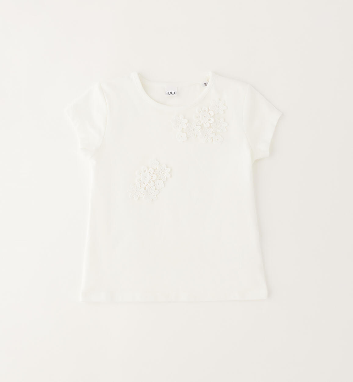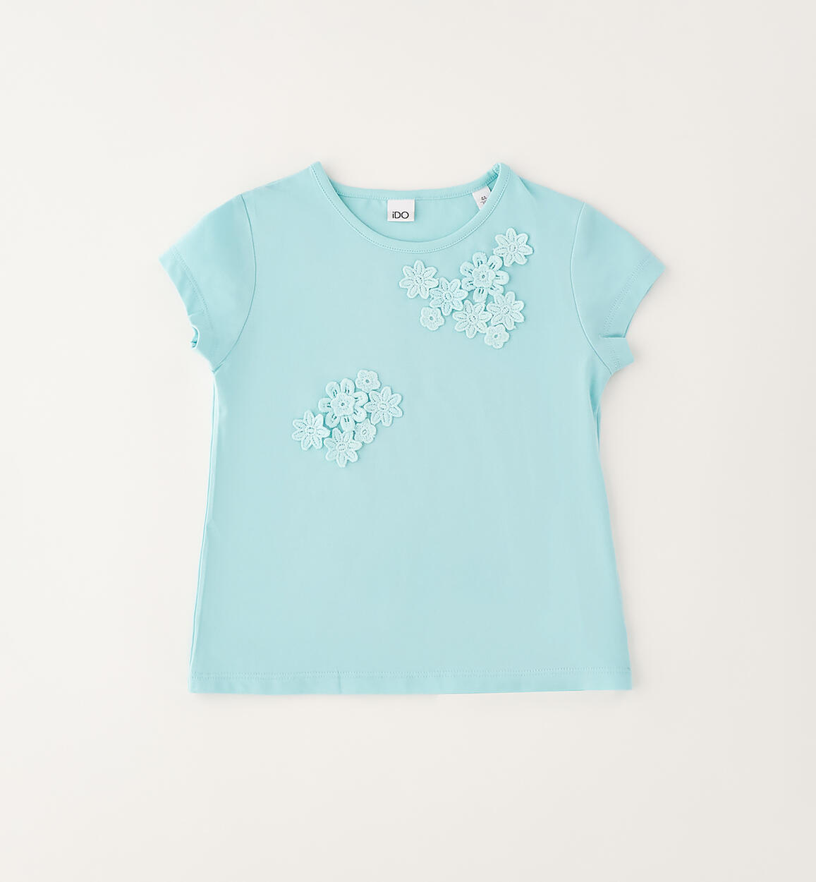 T-shirt per bambina iDO in jersey stretch di cotone con fiori in applicazione. Scegliendo i nostri prodotti in cotone, sostieni l'impegno di iDO nella missione Better Cotton. La fornitura di questo prodotto avviene tramite un sistema di bilancio di massa e potrebbe non contenere Better Cotton. Leggi di più su bettercotton.org/massbalance