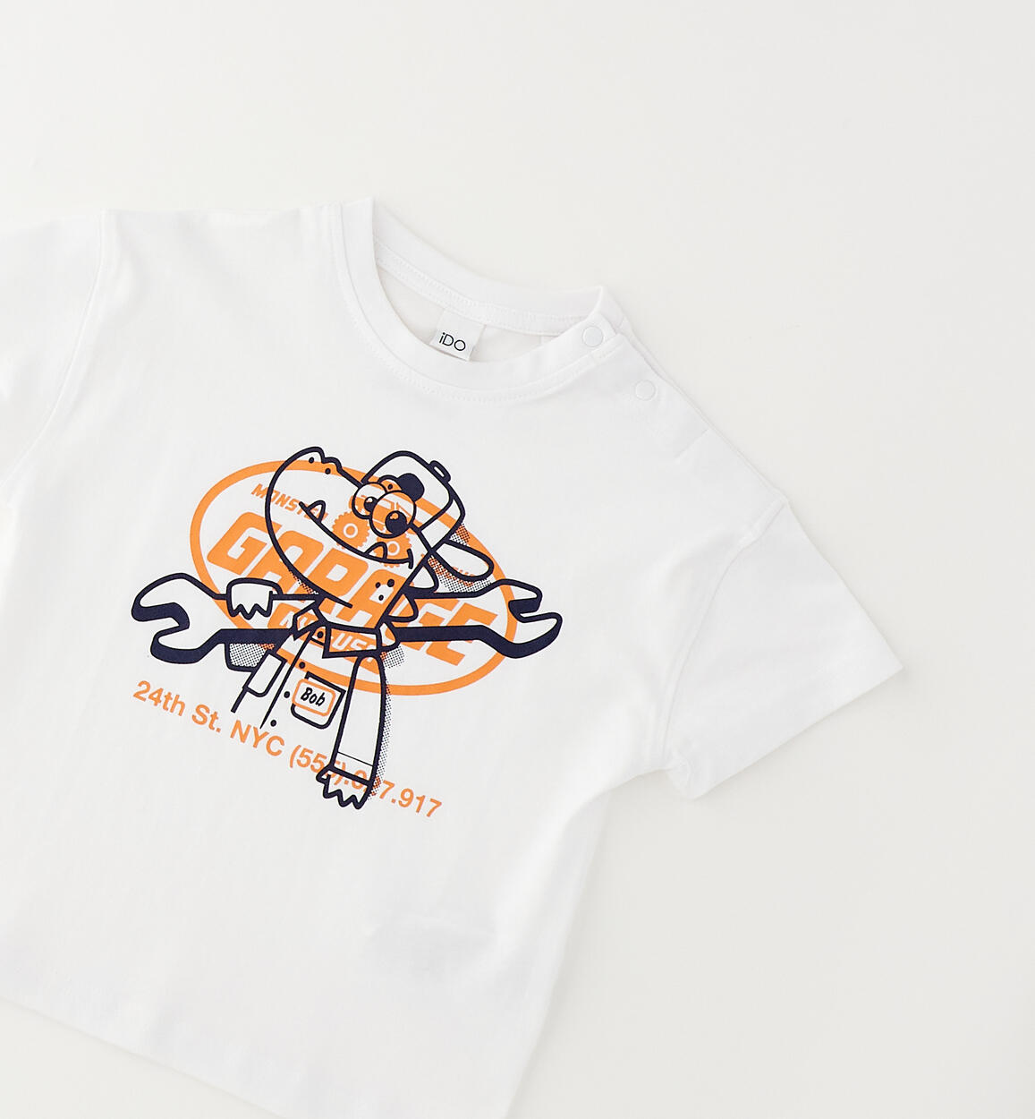 T-shirt per bambino iDO realizzata in jersey 100% cotone con stampa davanti. Modello oversize con spalla calata. Scegliendo i nostri prodotti in cotone, sostieni l'impegno di iDO nella missione Better Cotton. La fornitura di questo prodotto avviene tramite un sistema di bilancio di massa e potrebbe non contenere Better Cotton. Leggi di più su bettercotton.org/massbalance